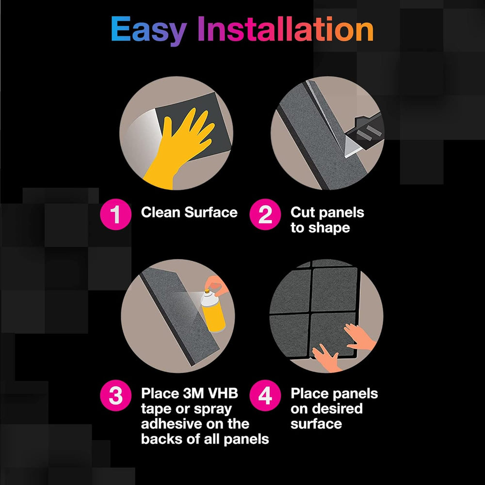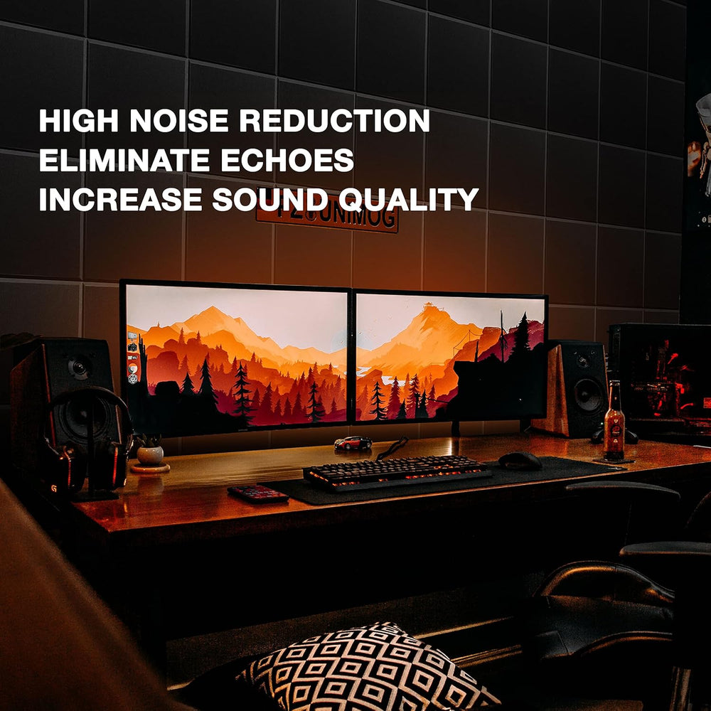 [INSONORIZACIÓN SUPERIOR]: Estos paneles acústicos están hechos de fibra de poliéster 100 de alta densi 300 libras por yarda cúb ¡mejor aislamiento acústico que otros materiales de espuma acústica! A prueba de sonido y retardante d inod no tóx antidesliza resistente a la corrosión y a la decoloración. [ELEGANTE]: 0,4" x 12" x 12". Nuestros paneles de amortiguación acústica aislamiento acústico para pared tienen un diseño elegante que también sirve o arte decorativo en tu espacio favor lo que te permite dejar innumerables recuerdos hermosos en un entorno cómodo. [FÁCIL DE INSTALAR]: Estos paneles de espuma insonorizante funcionan con adhesivo en spray de uso general y cinta adhesiva de doble cara. Simplemente adhiere adhesivo en spray o cinta adhesiva de doble ca (no incluidos) en la parte posterior de cada panel de sonido y adhiérelo en la posición deseada. [AMPLIAS APLICACIONES]: Ideal para tratar el sonido en las paredes de tu estudio u oficina - Para uso en estudios de grabac salas de cont ofici estudios case teatros de entretenimiento en el ho oficinas en casa. Fácil de dar forma y cortar a med ¡la alteración no afectará el rendimiento! ¡O úsalo en el te detrás del televisor o debajo de tu alfombra! DE SERVICIO POSTVENTA]: Nuestro servicio a basado en EE. UU. significa que puedes confiar en qu por cualquier mot puedes obtener u sin plicaciones. ? Ver más detalles del producto [AISLAMIENTO ACÚSTICO SUPERIOR]: Estos paneles acústicos están hechos de fibra de poliéster 100 de alta densi 300 libras por yarda cúb ofreciendo mejor aislamiento acústico que otros materiales de espuma. A prueba de son retardante d inod no tóx antidesliza resistente a la corrosión y a la decoloración. [ESTILOSO]: Medidas de 0.4'' x 12'' x 12''. Nuestros paneles de amortiguación acústica para pared tienen un diseño elegante que funciona o arte decorativo en tu espacio favor permitiéndote crear hermosos recuerdos en un ambiente confortable. [FÁCIL DE INSTALAR]: Estos paneles de espuma acústica se adhieren fácilmente con adhesivo en spray de uso general y cinta de doble cara. Simplemente aplica adhesivo en spray o cinta de doble ca (no incluidos) en la parte posterior de cada panel y pégalo en la posición deseada. [AMPLIAS APLICACIONES]: Ideal para tratar el sonido en las paredes de tu estudio u oficina. Perfecto para estudios de grabac salas de cont ofici salas de entretenimiento en el ho y oficinas en casa. Fácil de dar forma y cortar a med sin afectar su rendimiento. ¡Úsalo también en el te detrás de la TV o debajo de tu alfombra! DE SERVICIO POST-VENTA]: Nuestro servicio a en Estados Unidos te asegura qu por cualquier mot puedes obtener u sin plicaciones. ¡Consulta más detalles del producto!