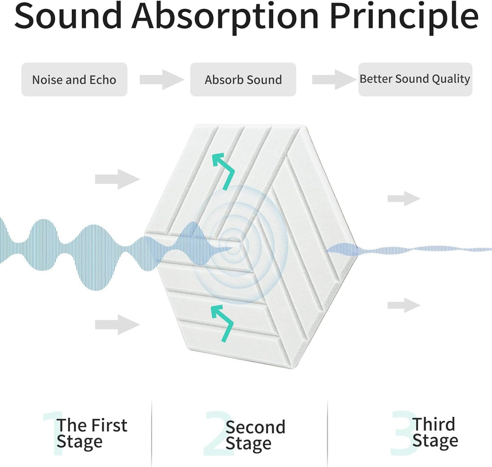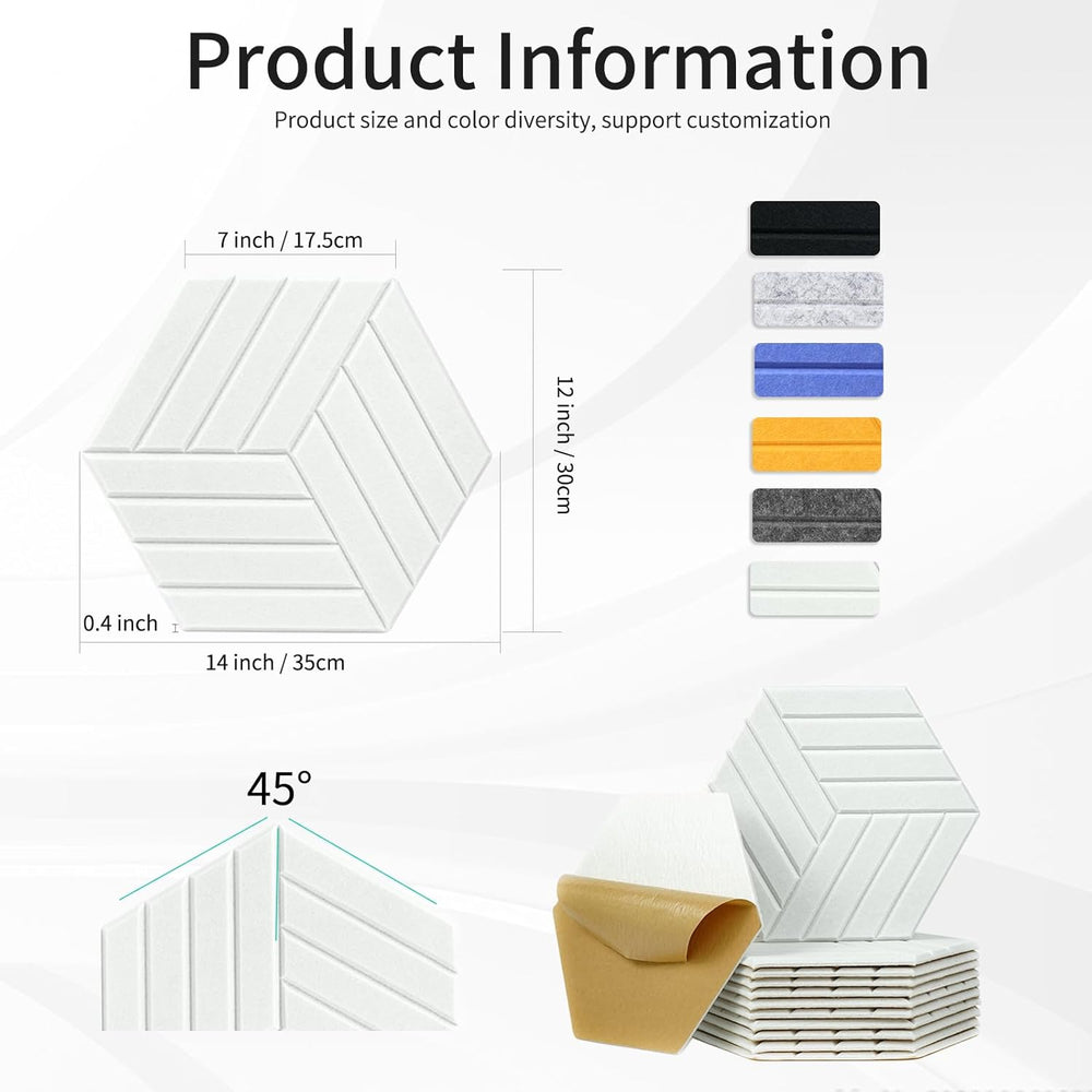 Paneles Acústicos Hexagonales 12 Piezas Autoadhesivos 14x12