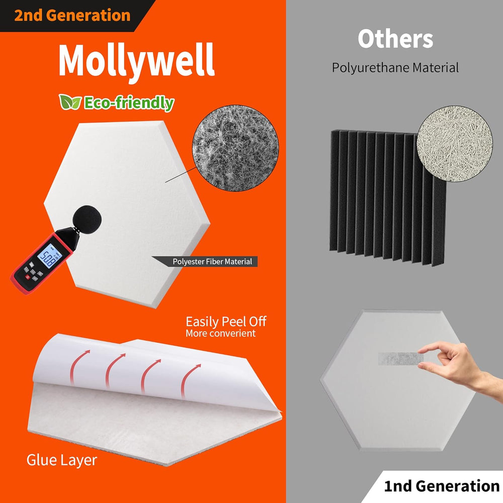Paneles Acústicos Hexagonales, Mollywell, Alta Densidad, 14x12x0.4