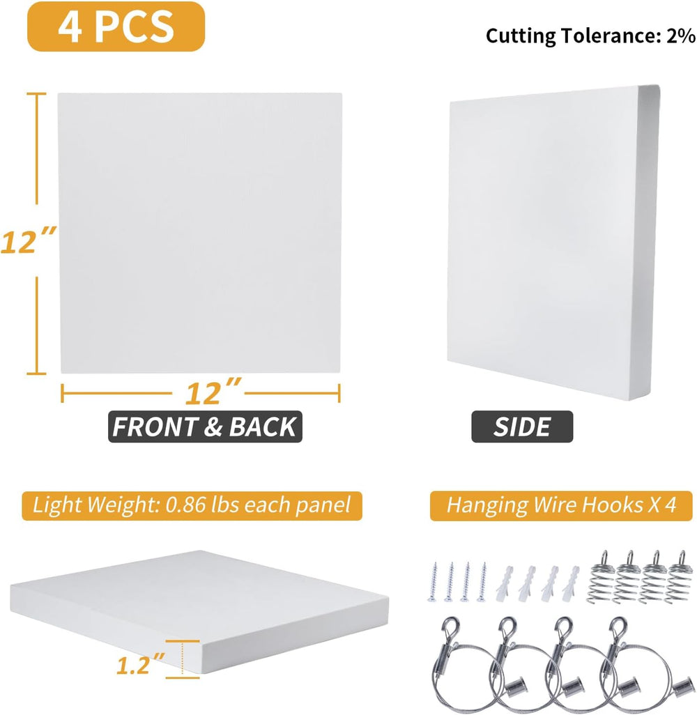 Paneles Acústicos TroyStudio 12x12 Pulgadas, 4 Piezas, Fibra