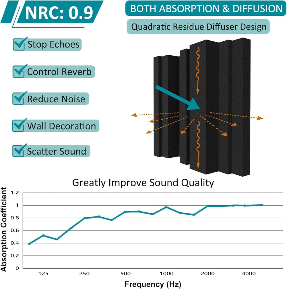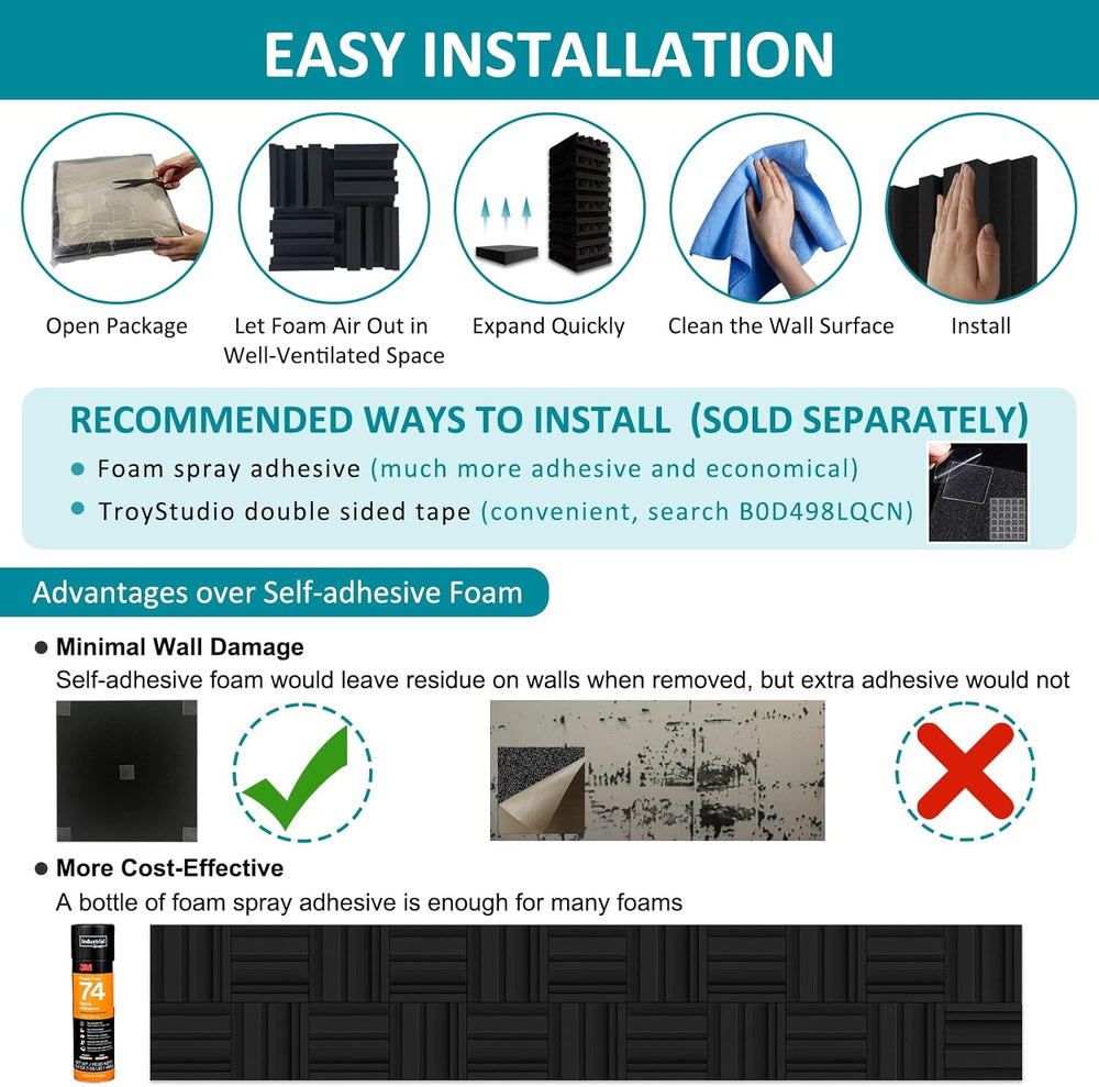 Paneles Acústicos TroyStudio 12x12x3, 12 Pcs, Alta Densidad