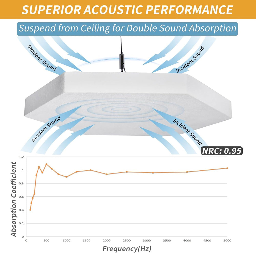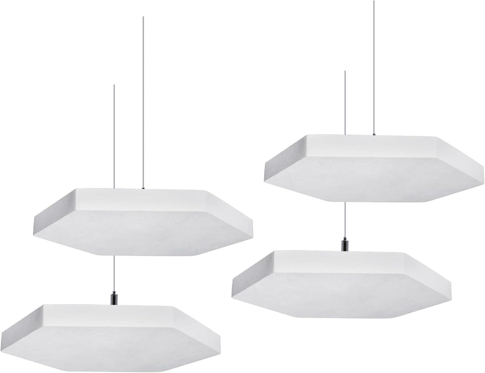 ?ESPECIFICACIONES?: Tamaño: 14.2 x 12.4 x 1.2 pulgadas (tolerancia de corte paquete de 4; Peso: 0.78 libras cada panel; Densidad: 120 kg m³ (7,49 lb ft³); Material: Fibra de vidrio premium con superficie letamente recubierta para evitar la picazón lo máximo posible ?COLGAR DEL TECHO: DOBLE ABSORCIÓN DE SONIDO Y AHORRO DE ESPACIO?: En aración con pegar directamente a una superfi colgar el panel acústico del techo permite la absorción de sonido en ambos la no solo en uno. Ade ahorra mucho espacio en tu habitación al colgar estos paneles de fibra de vidrio desde arriba en lugar de montar en la pared. ?EXCELENTE TRATAMIENTO ACÚSTICO?: Nuestros paneles acústicos son horribles y están hechos de fibra de vidrio que amortiguan considerablemente las reflexiones de sonido. Funcionan de manera impresionante en la reducción de la reverberación de la habitac el eco y el ruido ambiental. Ideal para salas de cine en c estudios de grabac estudios case ofici salas de bate podca cabinas voca sistemas de altavoces esté salas de mús salas en v salas de au salas de transmisión y más. ?ELEGANTE Y SEGURO PARA INTERIORES?: Con nuestros paneles de techo suspendi es entrar en una habitación llena de nubes. Relaja tu cuerpo y calma tu corazón. Ade son pintab brindando infinitas posibilidades de bricolaje para que coincida con tu propio estilo. Son ecológi ligeros y retardantes de (Clase A2) ?HARDWARE DE COLGADO INCLUIDO Y FÁCIL INSTALACIÓN?: Nuestros paneles de fibra de vidrio recubiertos vienen con herrajes de colgado. Es fácil instalarlos en el techo siguiendo el video de instrucciones en est . También se pueden montar en la pared utilizando adhesivo de construcción (se vende por separado). (NOTA: Para usuarios sensibles al o ventile antes de usar. Y recuerde usar una mascari gafas y guantes al instalar incluso si están recubiertos) ? Ver más detalles del producto Información del producto Peso del artí : 4.42 libras Dimensiones del paquete: 15.35 x 13.46 x 6.89 pulgadas : C36LKMST Opiniones de lo s 4.0 de 5 estrellas 11 calificaciones Mejor ranking de ventas: número 4,188 en Instrumentos Musicales (Ver los 100 mejores en Instrumentos Musicales) Fecha de lanzamiento: 21 de abril de 2023 Nombre del color: Hexág Bla 4 piezas del producto: Para obtener información sobre l de este prod TroyStudio Paneles Acústicos de Techo - 14.2 x 12.4 x 1.2 pulgadas 4 piezas Paneles de Techo Colgantes de Fibra de Vidrio Recubier Tablero de Pared Grueso Absorbente de Sonido para Ofic Cine en C Estudio de Grabación (Hexágono)