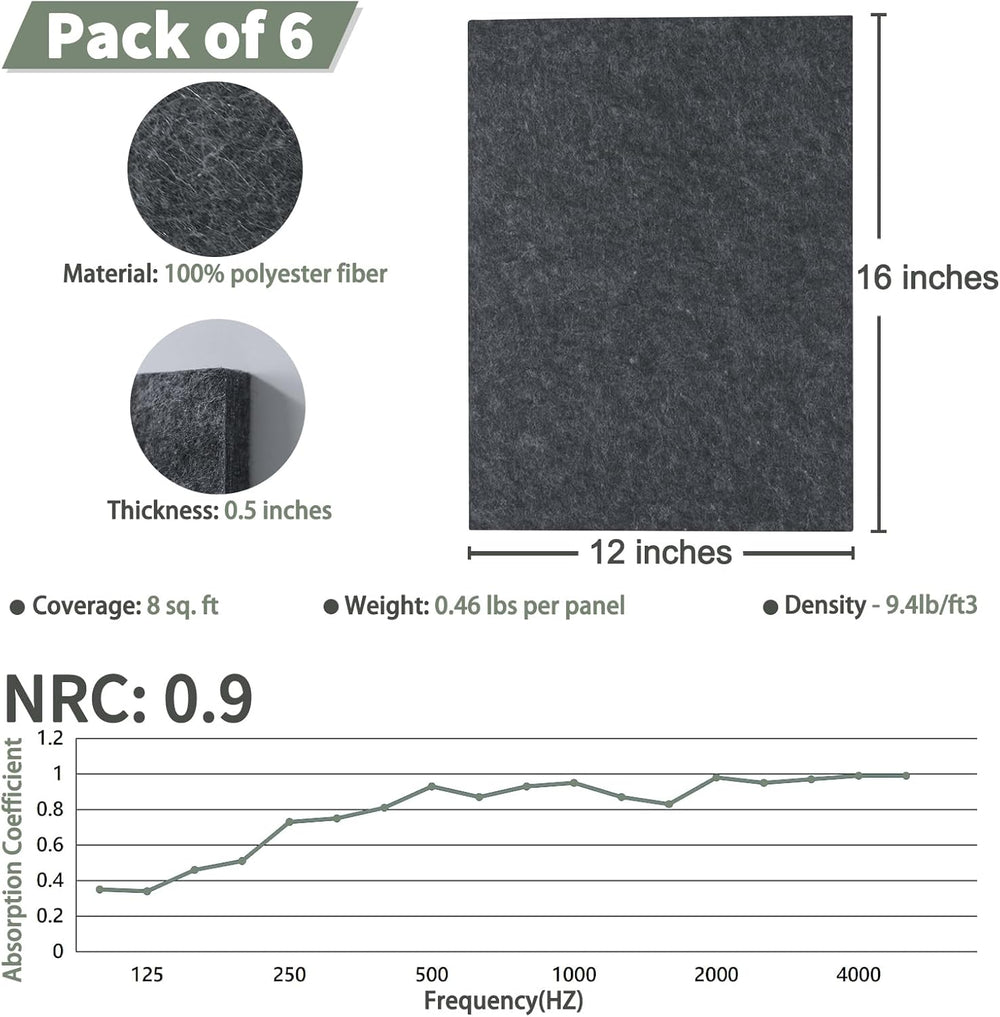 Paneles Acústicos TroyStudio, 16x12x0.5, Absorción de Sonido