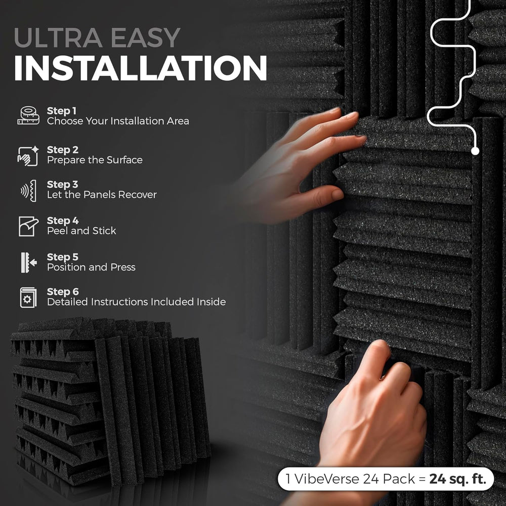 Paneles Acústicos VibeVerse 12x12x2, 24 piezas, Alta Densidad
