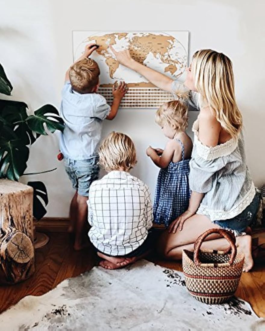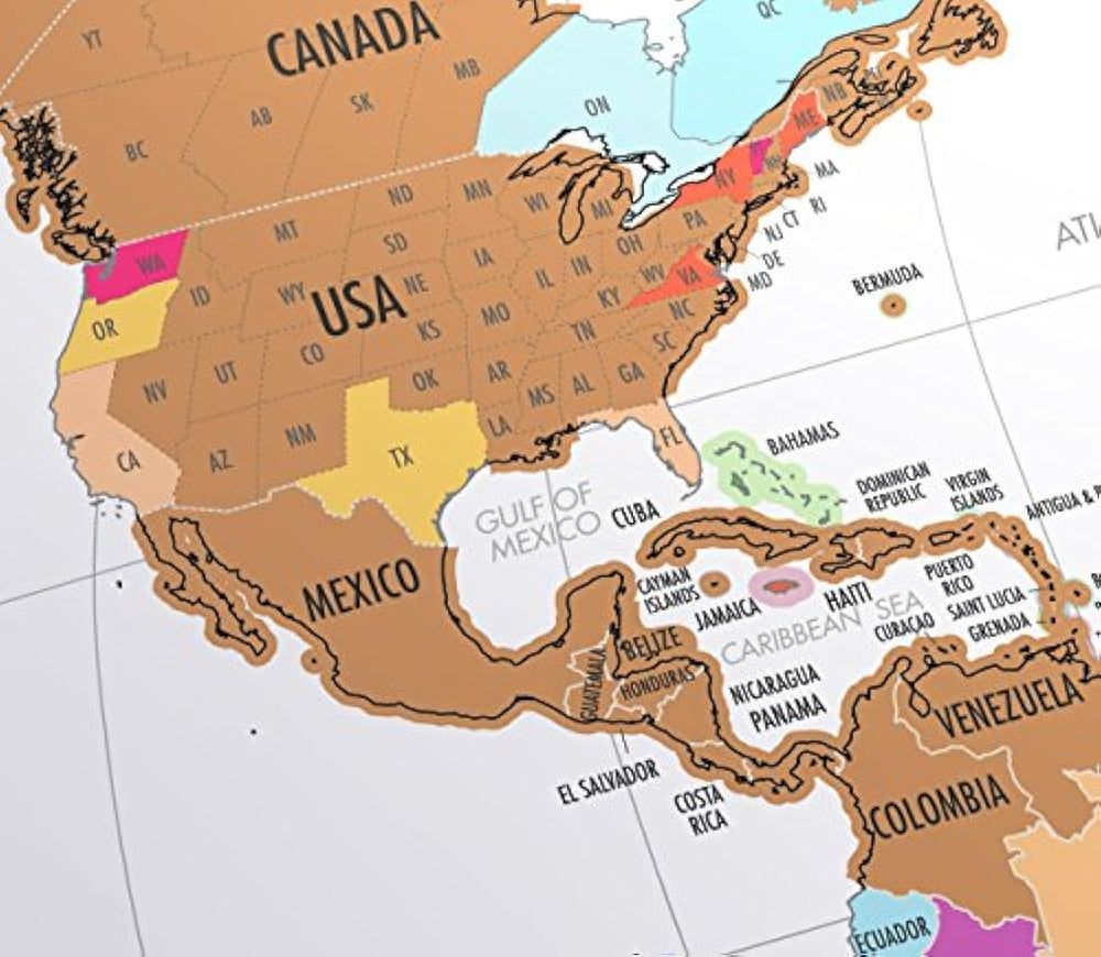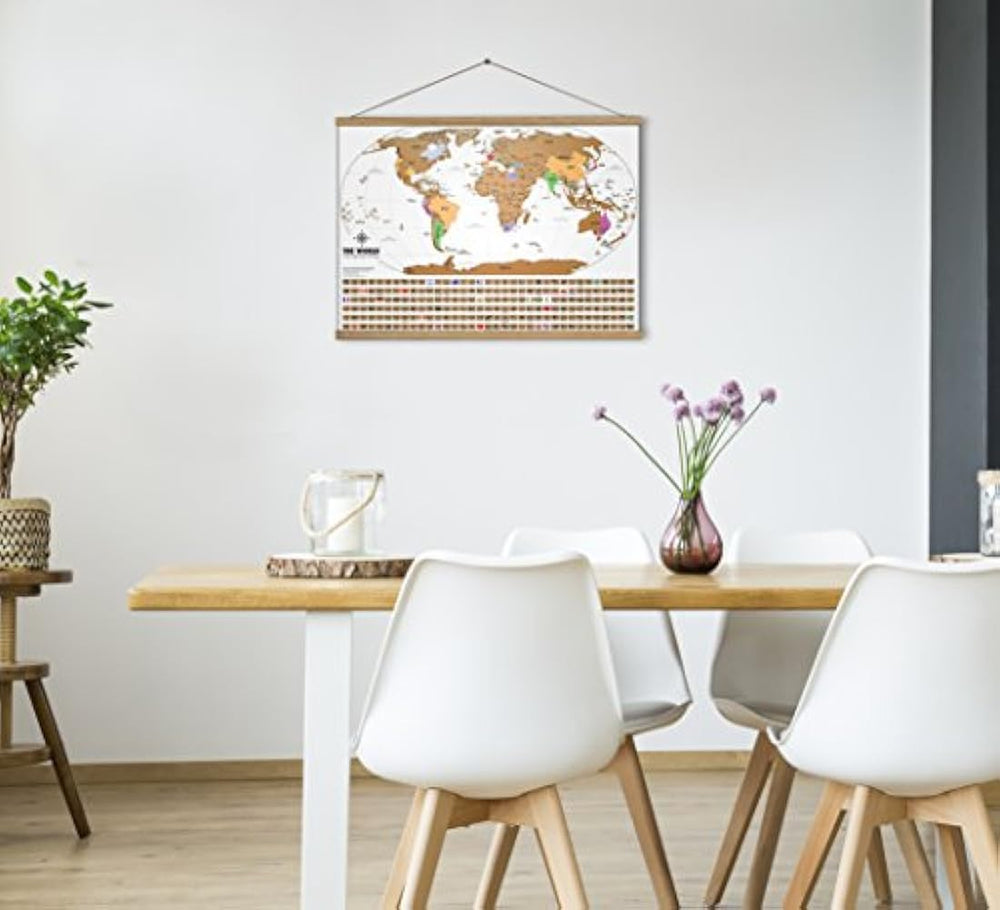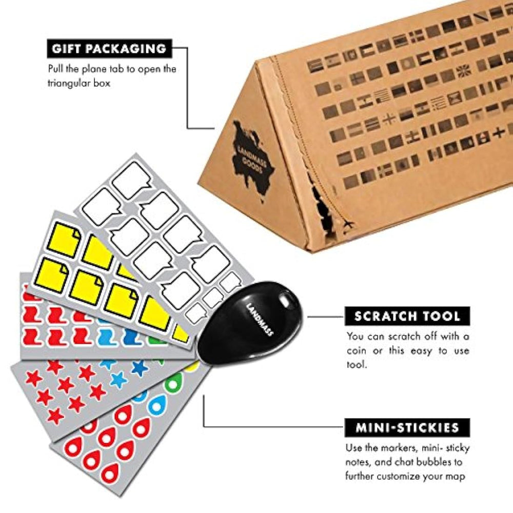 *** Características *** Diseño auténtico y profesional: la diferencia de nuestros mapas para raspar está en los detalles. Estados Unidos de América, banderas y países, todos afectados con precisión. Es un póster del que puedes estar orgulloso de regalar o colgar en tu propia pared. Mira de cerca para verificar que los mapas Landmass tienen el más limpio y elegante diseño hecho por cartógrafos profesionales. Sus recuerdos de viaje: para hacer tu historia cobre vida añadimos solo lo necesario. Colores vibrantes e inteligentes, estados de Estados Unidos separados por color, contornos alrededor de las islas y banderas precisas en la parte inferior. Lo que queda es que tú raspes tu historia única y perderse en las conversaciones de viaje. Raspador, billetera de viaje y ca anías personalizadas. Te encantará la billetera de viaje Tyvek que viene con este mapa, con una impresión de un mapa clásico del mundo. Incluye una herramienta raspadora de fácil uso que puedes utilizar opcionalmente en lugar de una moneda. Así o ca anías con mini notas para pegar y burbujas de chat que pueden personalizar aún más tu mapa. El regalo que quieren: un mapa de Landmass es lo que están buscando. Comenzando con un extravagante embalaje triangular donde tiras de la etiqueta-avión para llegar al mapa. Estarán emocionados no solo de raspar y revivir recuerdos, sino también hasta de colgarlo con orgullo después. Landmass es una empresa en Estados Unidos de viajeros que inspiran personas a explorar. Es realmente así de fácil. Mapa para raspar Landmass. Raspa adonde hayas ido y planea tu próximo viaje. El mapamundi Landmass Goods tiene una etiqueta superior dorada, tal o un billete para raspar, con colores vibrantes debajo. El mapa es un tamaño ideal de 17 x 24 pulgadas. Puedes encontrarle un marco en , o usar broches de metal para un look clásico. Presentando 210 banderas del mundo, datos de terreno y, contornos de estados de Australia, Canadá y los Estados Unidos. El mapa de viaje es un regalo perfecto para el viajero en su vida.