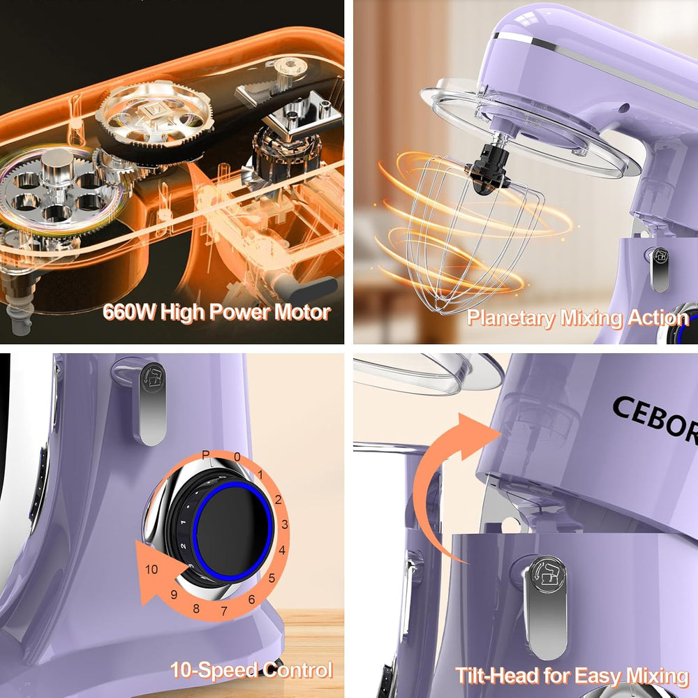Batidora de Pie 3 en 1 6.5QT 660W 10 Velocidades, Modelo XYZ