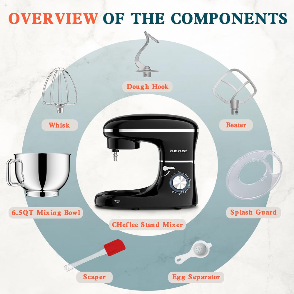 Batidora de pie CHeflee, 600W, 6.5QT, 6+P, accesorios incluidos