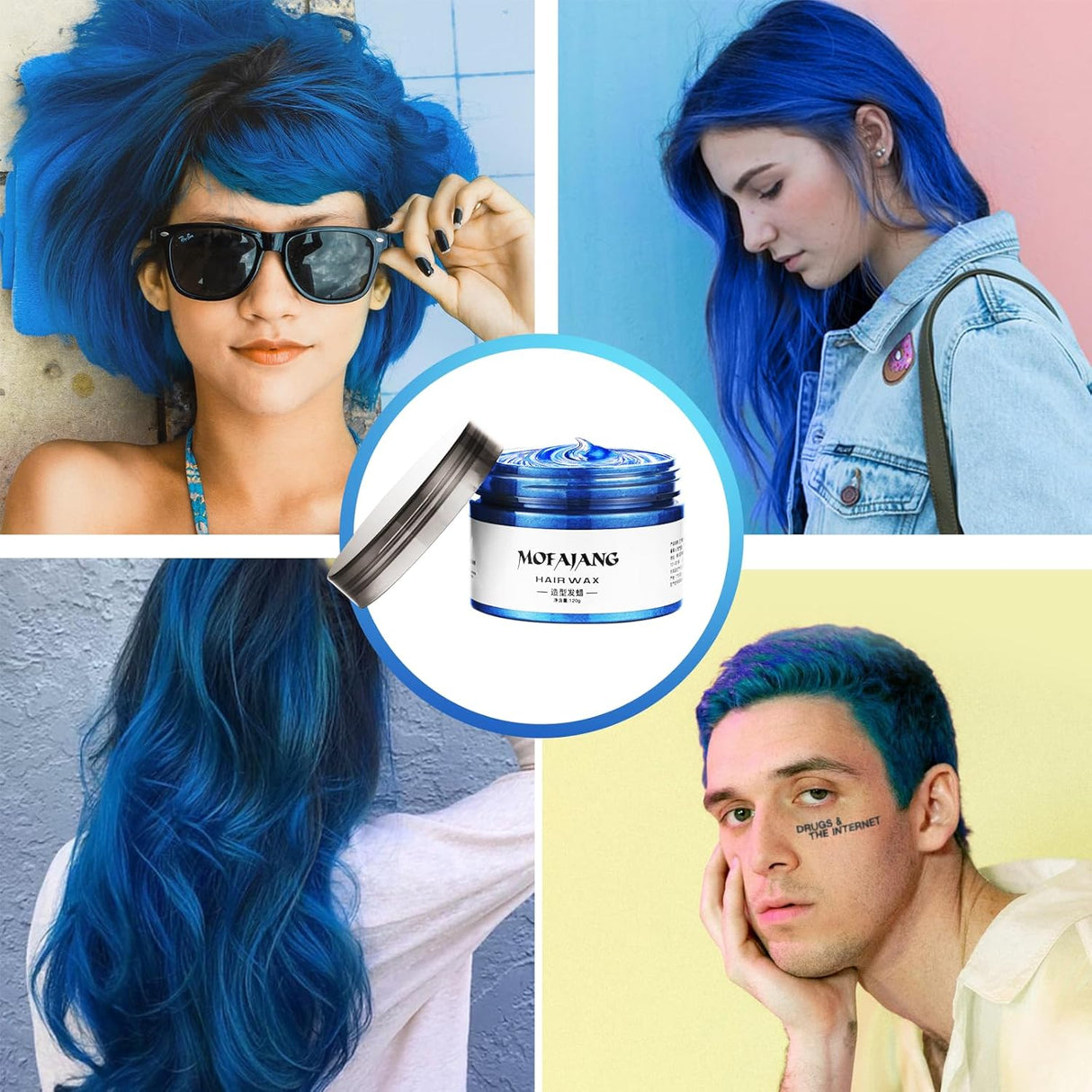 efly color cera para el cabello para niñas de azul.