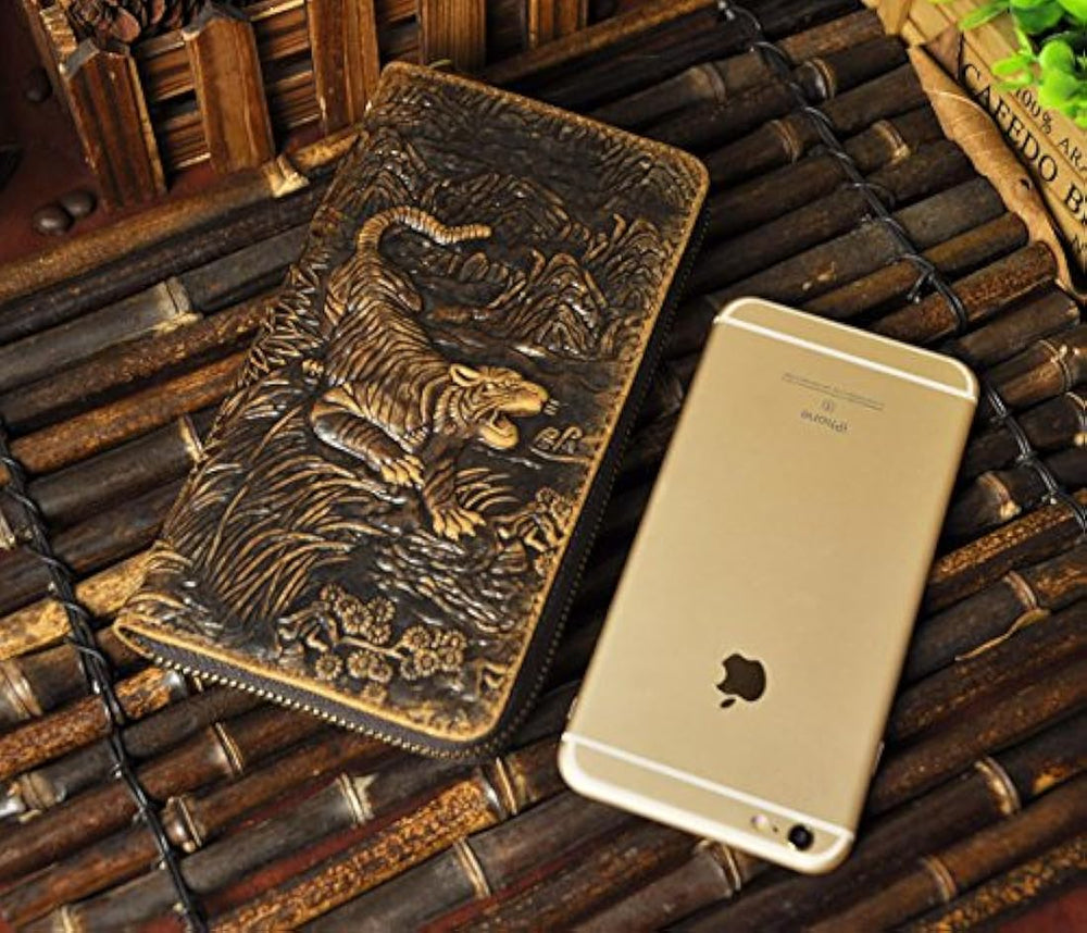 Le'aokuu Funda de piel auténtica para hombre, estilo vintage