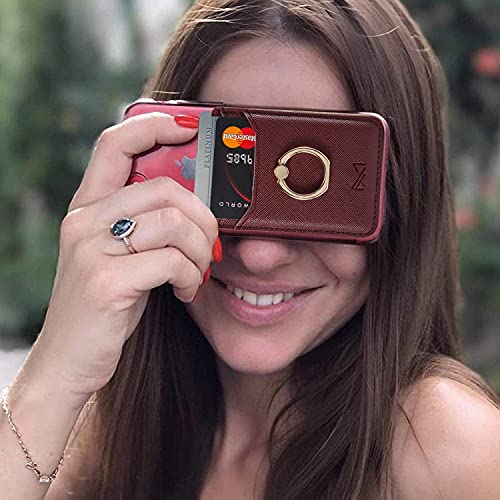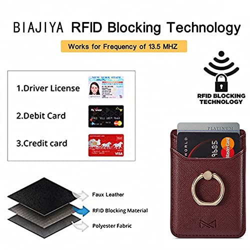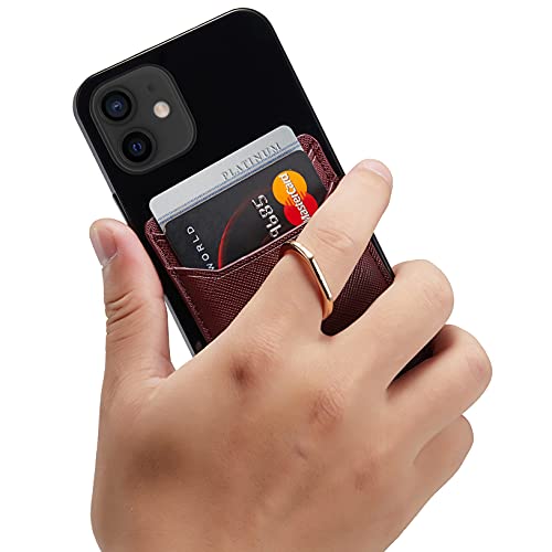 Tarjetero RFID para teléfono celular, tarjetero adhesivo de crédito para la parte posterior del teléfono para la mayoría de teléfonos inteligentes (rojo ganado)