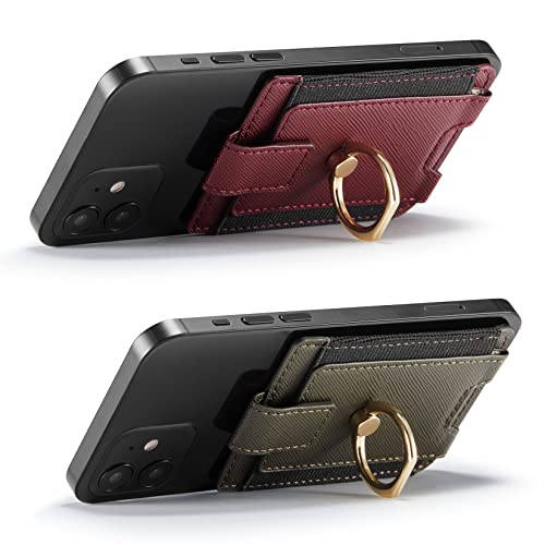 Tarjetero RFID para teléfono celular, tarjetero adhesivo de crédito para la parte posterior del teléfono para la mayoría de teléfonos inteligentes (verde + rojo ganado)