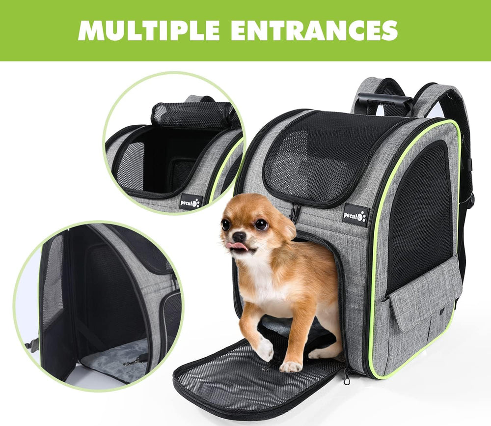 Extensible y plegable: este transportín de mascotas con un diseño de espalda expandible le da a tu mascota más espacio (aumento en un 90%) para descansar y aumentar la circulación del a permite que tu mascota se mueva más cómodamente y reduce la ansiedad. Cuando no necesitas usa la mochila plegable para mascotas solo ocupará muy poco espacio. Máxima circulación de aire y múltiples entradas: viene con ventanas de malla transpirable de 4 la dando un montón de aire para mascotas. Hace que sea fácil para usted observar el movimiento de sus mascotas mientras disfrutan del paisaje exterior. Con cremalleras en la parte superior y fron tus encantadoras mascotas se pueden poner y quitar de nuestra mochila transportadora para mascotas fácilmente. Diseño de absorción de golpes: cojín de espalda de esponja elástica de malla de pa transpira resistente a la de resión y a los gol libera la presión y viaja fácilmente. Diseño ampli almohadilla de hombro ajustable para ayudar a reducir la carga y aumentar la di dos hebillas retráctiles en la parte superior e inferior de la mochila para gato para evitar la desviación de la correa del hombro y mantener la estabilidad del transportador del perro. Seguridad y almacenamiento: 1. Hecho de tela Oxford de alta cali impermea antiaraña respetuoso con el medio ambie no tóxico y no irrita deja que tu mascota respire libremente y se relaje. 2. Adopta un diseño de cremalleras tipo bloqueo para evitar que las mascotas abran la cremallera. Cuerda de seguridad con gancho retráctil integrado con cremallera antiescape para evitar que las mascotas se escapen. 3. Los bolsillos en ambos lados pueden almacenar alimentos y bolsas de basura y algunos accesorios necesar aperiti lla tarjetas o teléfonos móvi etc. ? Resistente y cómoda parte inferior – doble cara utilizada? La mochila para perro tiene una parte inferior firme extraíble que se puede abrir y cuenta con un acolchado suave y cómodo para que tu mascota se sienta o duerma cómodamente. Se puede utilizar por ambos lados: la alfombrilla inferior está hecha de felpa corta. En invie las mascotas pueden permanecer en el interior para mantenerse calientes y cómodas; el otro lado es de tela Oxf adecuado para el ver fresco y transpirable. Se puede quitar y lavar por separado.
