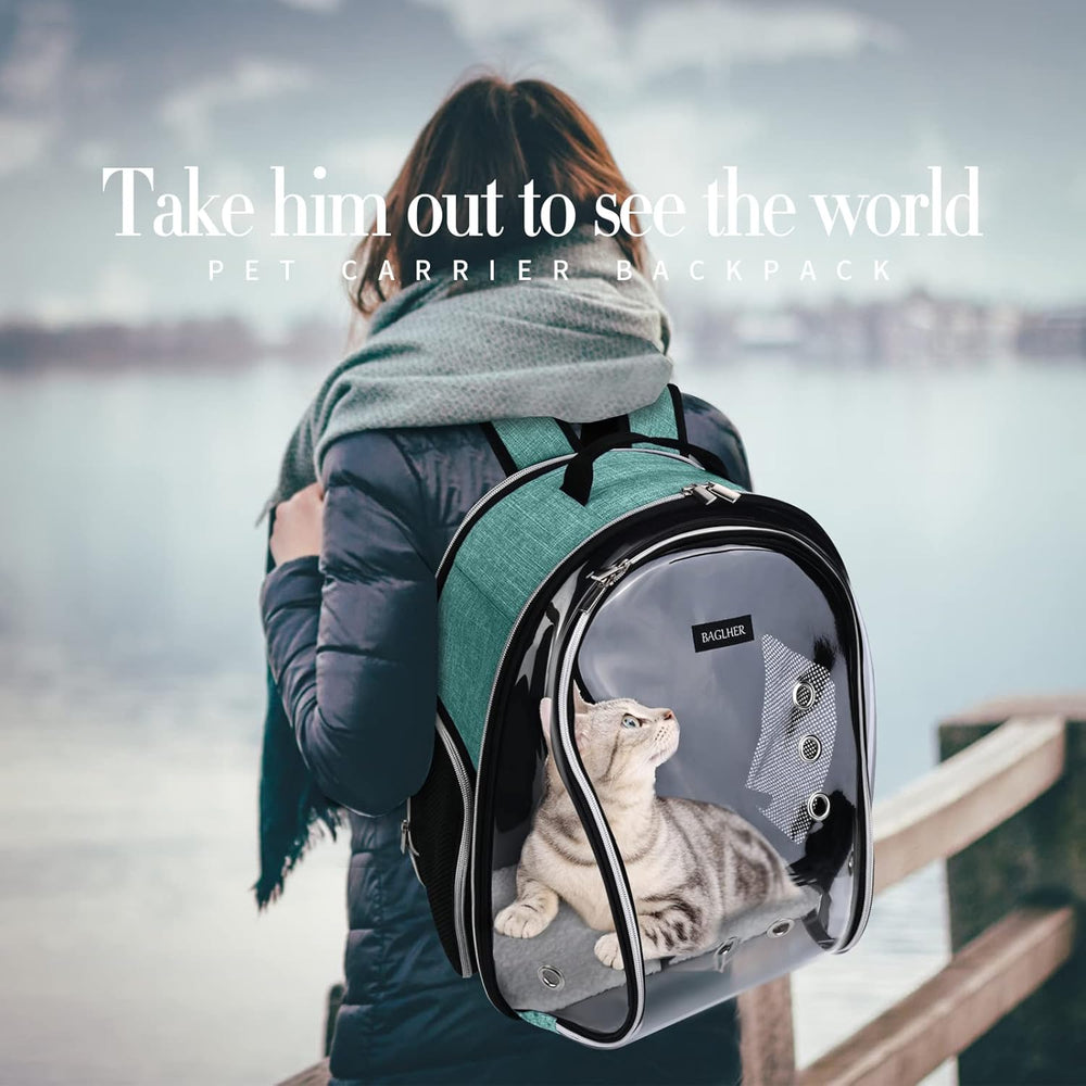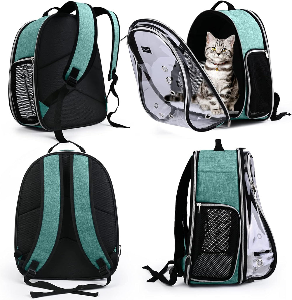 Mide a tu mascota antes de rar: el tamaño de los transportes para mascotas es de 13.5 pulgadas de largo x (baja: 11 pulgadas; arriba: 6.5 pulgadas de ancho x 16 pulgadas de alto. Se r enda utilizar un gato por debajo de 10 libras. Importante: rueba los requisitos de tu aerolínea antes de viajar. Diseño transparente: diseño de ventana frontal transparente de alta calidad para mantener una amplia visión para tu mascota. Hace que tu mascota se sienta más seg cómoda y permite que tenga una visión más amplia del exterior. Ligero y transpirable: este transportador para mascotas está bien hecho con materiales seguros para mascotas de alta cali fácil de limpiar y ligero. 7 grandes agujeros de ventilación en ambos lados y fron las redes de ventilación izquierda y derecha garantizan aire fresco para las mascotas. Así que tu mascota disfrutará del tiempo de viaje contigo Diseño ergonómico: las correas de la mochila pueden absorber el sudor y aliviar la presión de tu mochila para que te sientas más cómodo. Funcional y segura: esta pequeña mochila de animales incluye una alfombrilla de apoyo extraíble que se puede lavar a mano o a máqu fácil de limpiar. Una hebilla de cuello de seguridad está unida en el interior de la mochila.