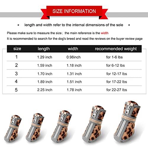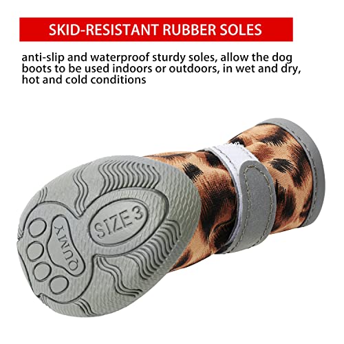 QUMY - Botas para perros pequeños y cachorros, impermeables, para la nieve del invierno, con franja reflectante, suaves y cómodas, con suela de goma antideslizante, estilo leopardo, 4 unidades