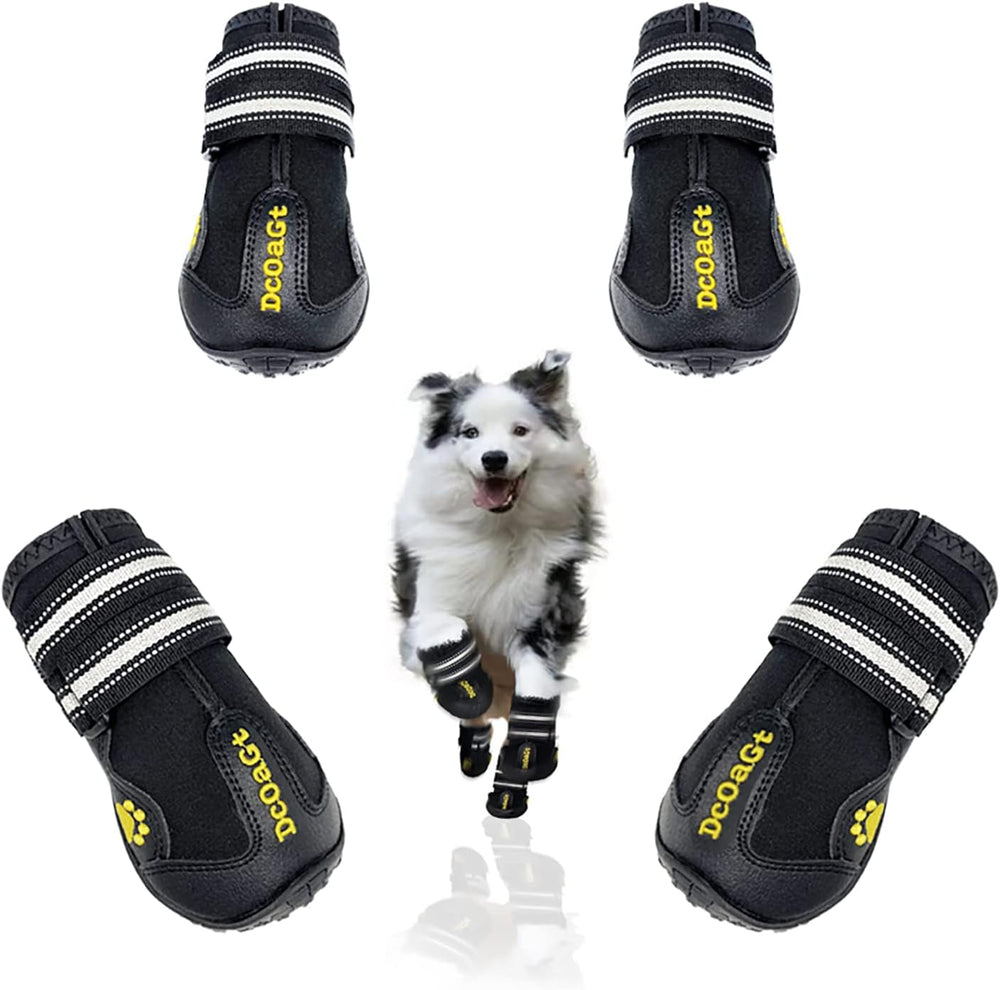Zapatos para perros grandes, botas de perro y protectores de patas para pavimento caliente de nieve de invierno, botines antideslizantes para senderismo, caminar, botines impermeables transpirables y reflectantes para perros de tamaño grande, 4 unidades