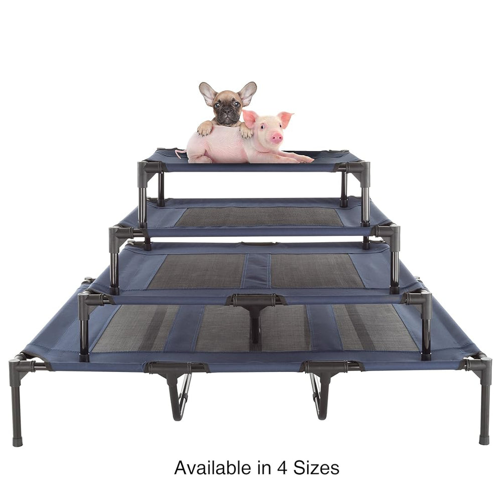 caracteristicas INTERIOR / EXTERIOR: la cama elevada para mascotas es resistente a la intemperie y está equipada con patas de goma antideslizantes, por lo que es ideal tanto para uso en interiores como en exteriores. ¡Esta cama estilo cuna se puede colocar en cualquier lugar de la casa, así como en su porche, patio o patio trasero! ESTUCHE DE TRANSPORTE INCLUIDO: con un estuche de transporte convenientemente incluido, esta cama es liviana, portátil y fácil de viajar. Lleve esta cama elevada donde quiera que vaya, para que su amigo peludo siempre pueda descansar cómodamente. CAMA LEVANTADA: una cama elevada para mascotas proporciona una mejor ventilación y regulación de la temperatura corporal para su mascota, ya que la mantiene elevada del pavimento caliente o de los pisos fríos. También les da cierta distancia de los ácaros o insectos que podrían molestarlos en la hierba. INSTRUCCIONES DE CUIDADO: lavar a mano solamente, en agua fría, sin blanqueador ni suavizante de telas. Secar al aire. DETALLES DEL PRODUCTO: para mascotas de hasta 25 lb Materiales: panel central de malla, acero revestido, tubo en T de PVC. Dimensiones: (L) 24.5 "x (W) 18.5" x (H) 7 ". Color: azul marino. Estuche de transporte incluido.