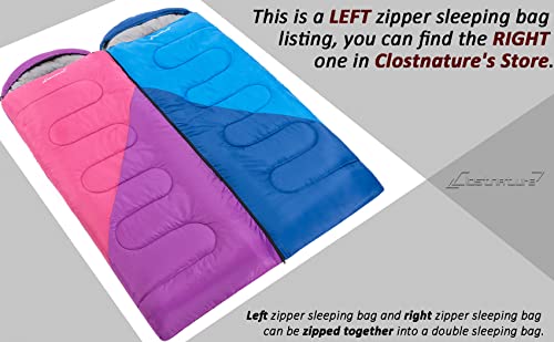 Clostnature Saco de dormir para adultos y niños, saco de dormir ligero para niñas, niños, jóvenes, saco de dormir ultraligero para clima frío, saco de compresión incluido (cremallera izquierda)