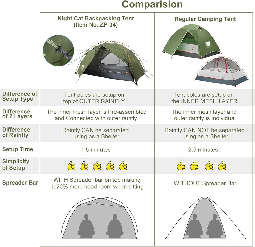 Tienda de campaña 2 personas Night Cat, impermeable, liviana, 7x4.4ft
