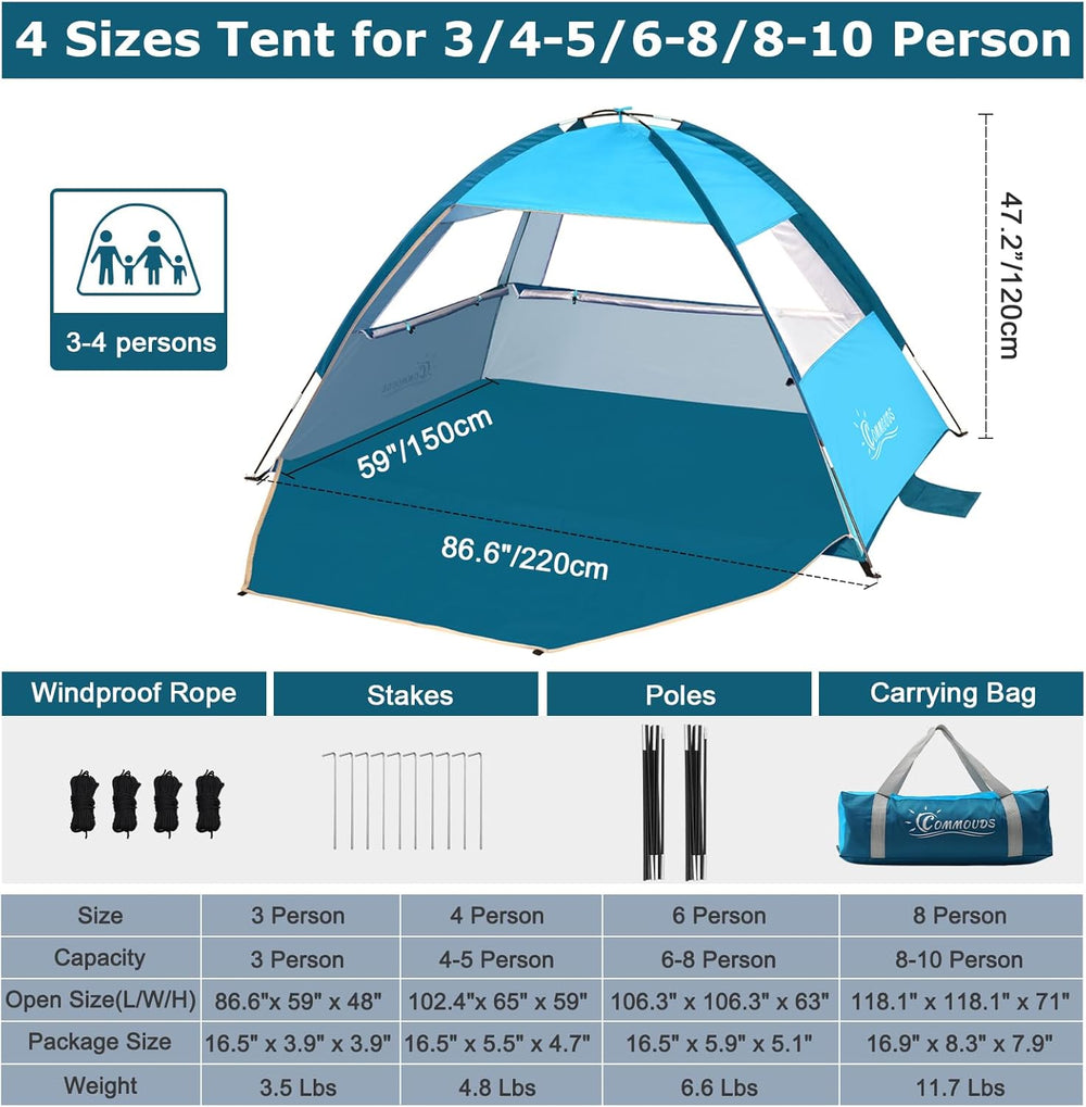 Tienda de playa con sombra, UPF 50+, ligera y fácil de montar