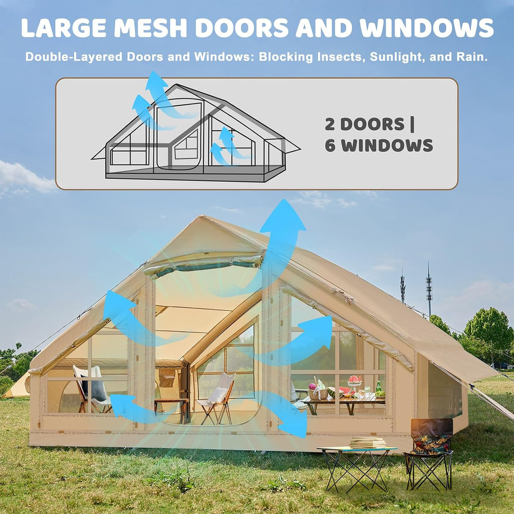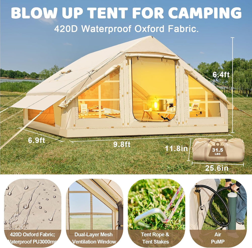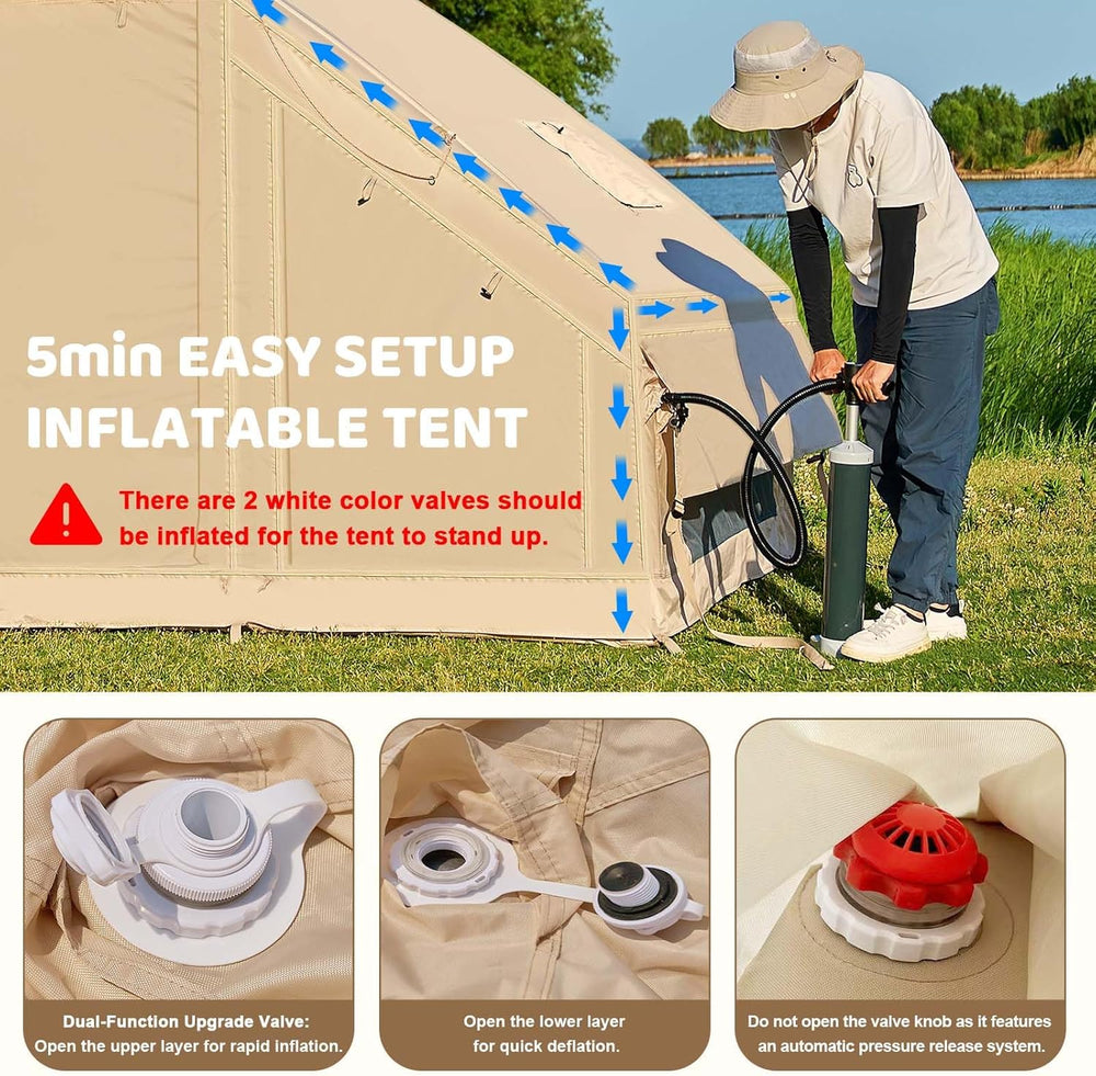 Tienda Inflable para Camping, Tienda Oxford 4-6 Personas, Con Chimenea
