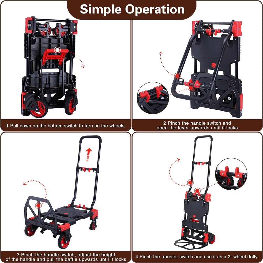 Carretilla Plegable 2 en 1, 330LBS, Ruedas, Mango Retráctil