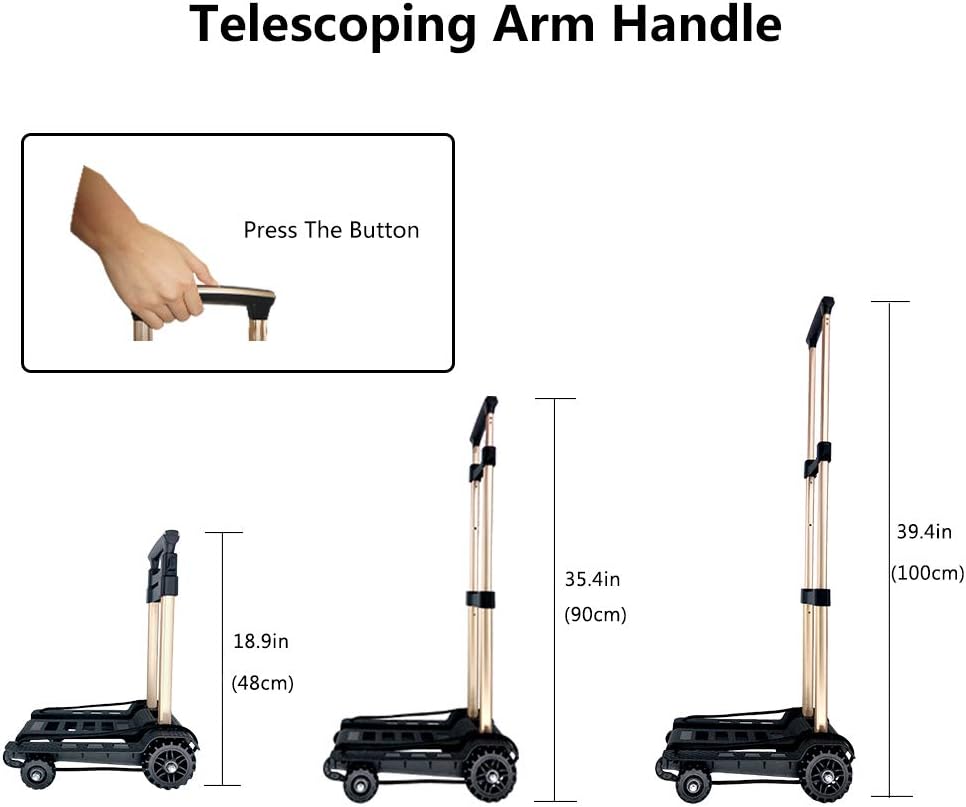 Carretilla Plegable Portátil 70Kg 4 Ruedas Mango Ajustable