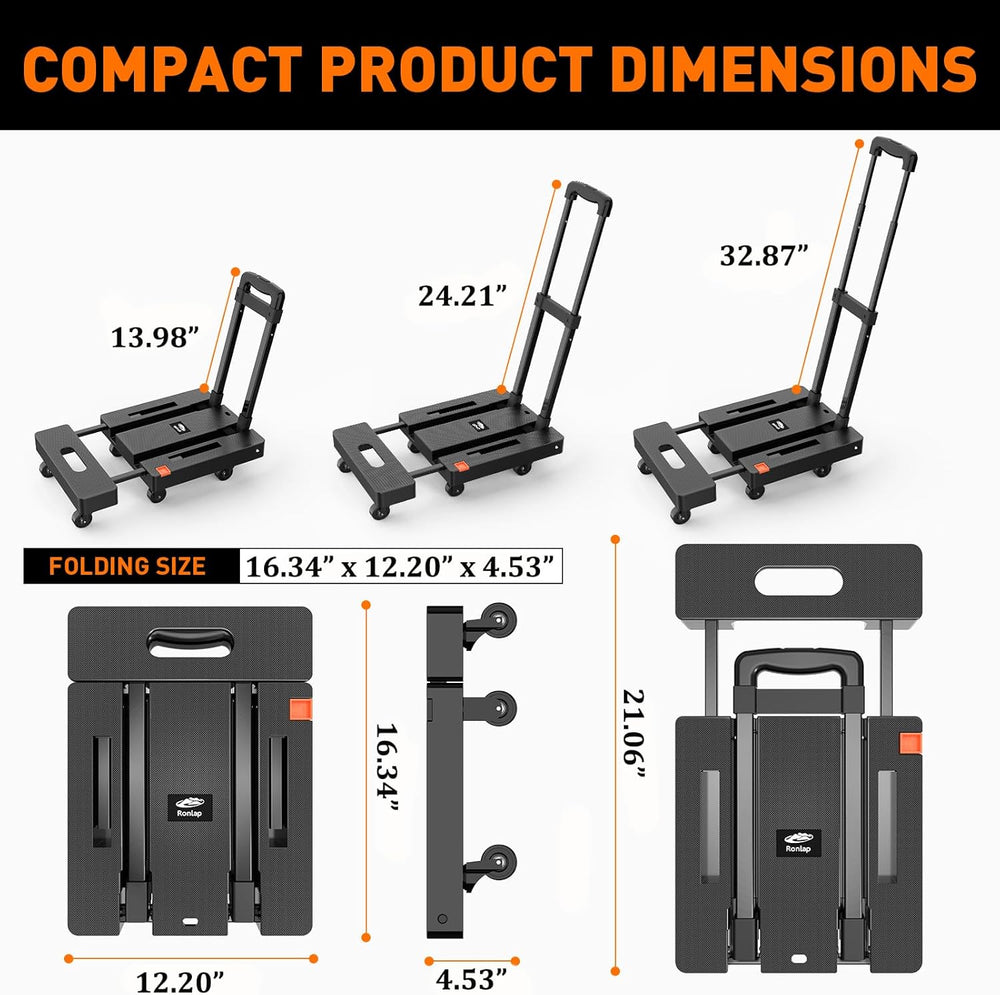 Carretilla Plegable Ronlap, Capacidad 500lbs, 6 Ruedas, Modelo