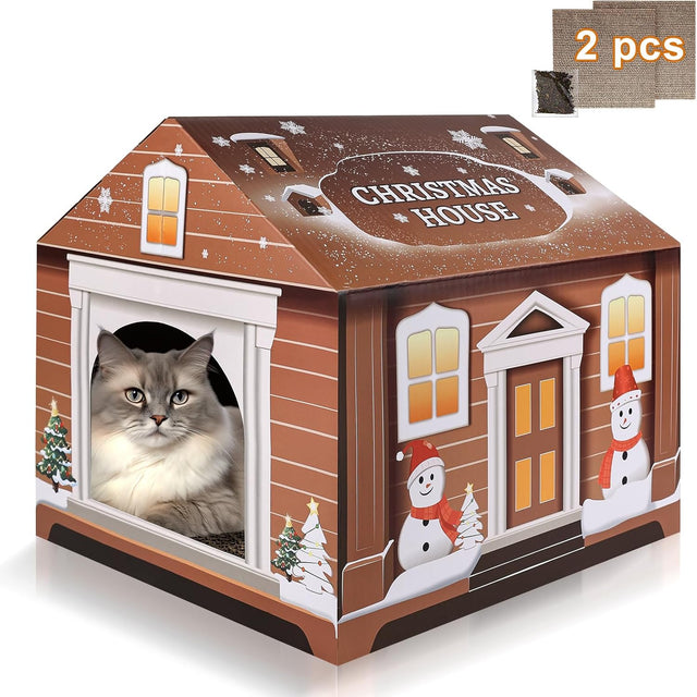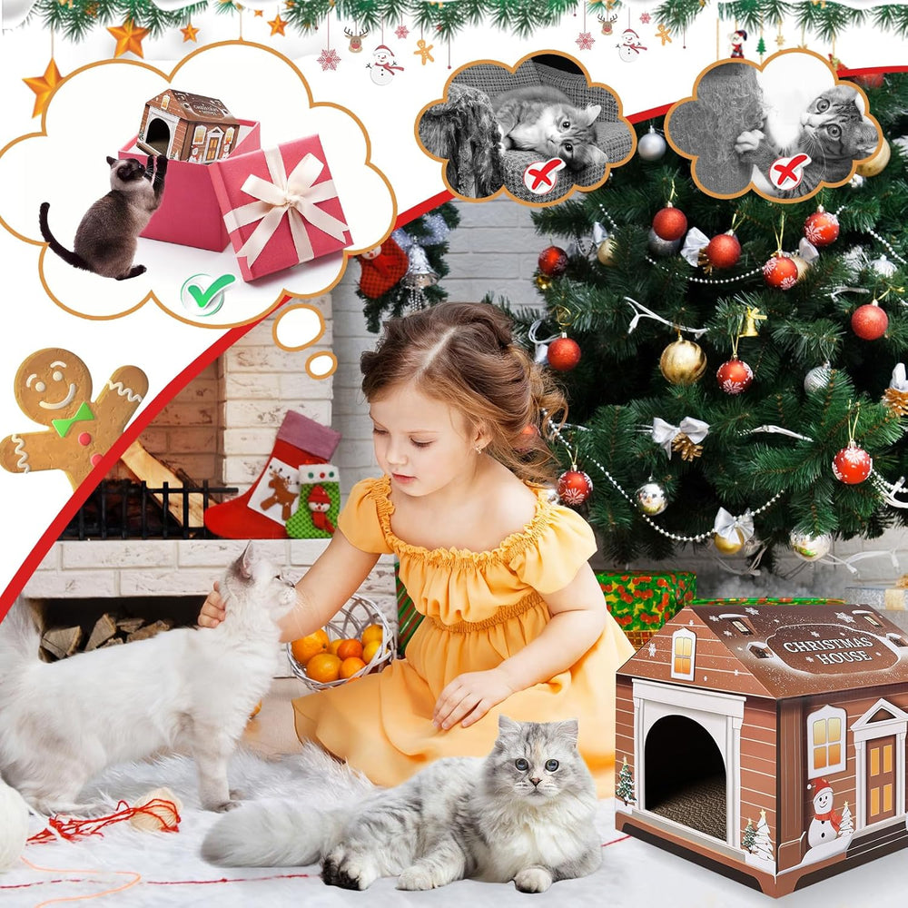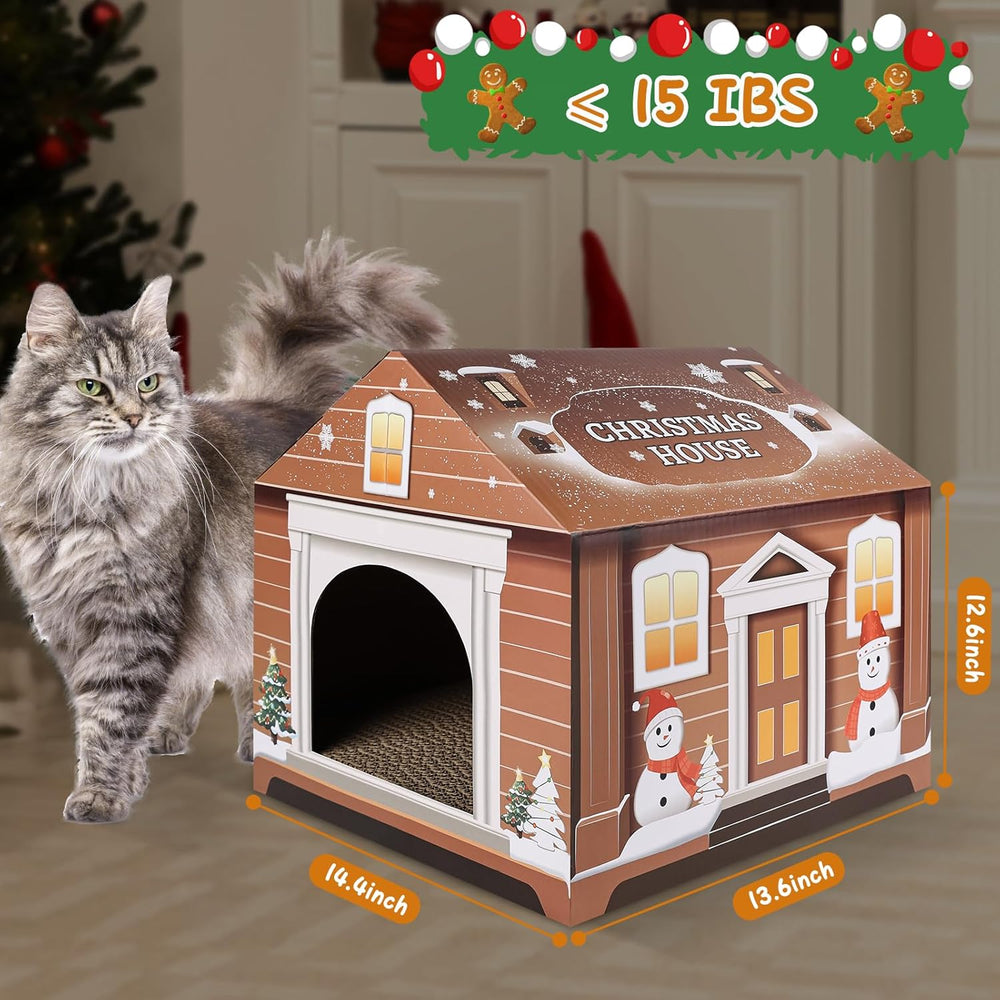 Casa de Cartón para Gatos, incluye Rascador y Catnip, 14x14x13