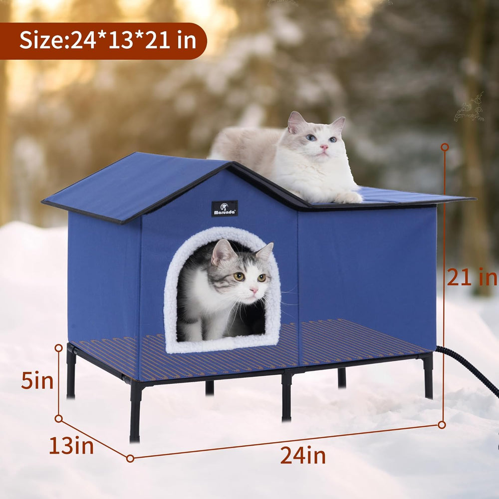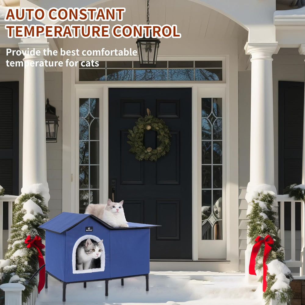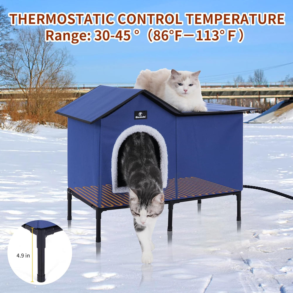 Casa de gatos elevada y calefaccionada, refugio exterior, fácil de armar