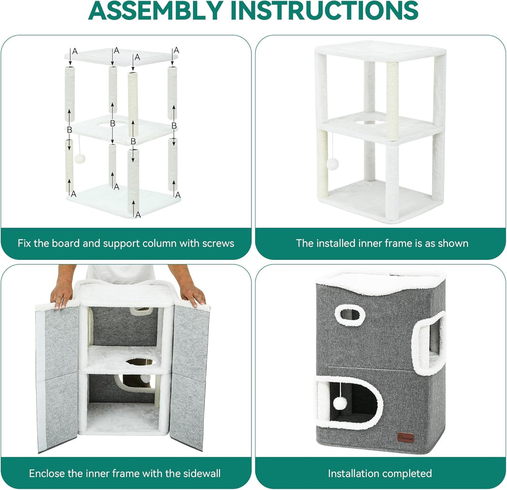 Acerca de este artí ?Casa de Gato de 2 Niveles?: Esta casa de gato proporciona tres áreas para que los gatos descansen y jueguen; Tanto el primer el segundo piso tienen un agujero de entrada de 8 pulgadas para un fácil acc y hay un pequeño agujero en el medio de los dos pisos para que los gatos viajen arriba y abajo para diversión sin fin; El tercer piso ofrece un espacio abierto para que los gatos se relajen y jueguen. ?Aplicaciones Versátiles?: Este rascador para gatos tiene un gran tablero rascador para gatos y dos postes rascadores para que varios gatos puedan mantener sus uñas sanas al mismo tiempo; También cuenta con una bola de peluche colgante en el agujero del primer nivel para atraer la atención de los gatos y proporcionar una inmensa diversión e interacción. ?Cómodo y Estable?: Esta cama para gatos de interior tiene un exterior hecho de lino ue fieltro y tablero hu y la estructura central está hecha de ocho pilares con tres tableros de densidad para lograr suficiente estabilidad; El tablero de densidad y los pilares están envueltos con peluche alrededor del agujero para brindar didad. ?Características Amigables para Gatos?: La parte superior de esta casa cubo para gatos no es una tabla dura sino una pequeña hamaca que a los gatos les encanta; Les da a los gatos una sensación leta de seguridad y di especialmente adecuada para que los gatos duerman; Puede soportar fácilmente gatos de hasta 33 libras ?Fácil de montar?: Este moderno condominio para gatos de 2 niveles actúa una hermosa pieza de mobiliario para mascotas con un aspecto estético que inará con los diversos diseños estilísticos de tu hogar; Simplemente sigue las instrucciones para un montaje rápido porque todas las herramientas y onentes que necesitas están dentro del paquete; El exterior es desmontable para una limpieza fácil. ? Ver más detalles del producto Información del producto Peso del artí : 8.15 libras Fabricante: YITAHOME : C9ZFT11X País de origen: China Número de modelo del artí : MAYIHEIf5Y Opiniones de lo s: 4.5 de 5 estrellas 93 valoraciones Fecha de lanzamiento: 3 de julio de 2023 Dimensiones del paquete del artí (L x An x Al): 17.63 x 13.82 x 5.75 pulgadas Dimensiones del artí (L x An x Al): 13.7 x 17.7 x 24.8 pulgadas : YITAHOME Público objetivo: Ga pequeños animales Instrucciones: Para todos los gatos Descripción de l : NO Nombre del modelo: MAYIHEIf5Y Color: Gris Tamaño: 2-Storey-A Material: Poliéster Descripción del rango de edad: Todas las etapas de la vida. Instrucciones de cuidado: Lavar a mano Estilo: Contemporáneo R ndación de raza: Todas Componentes incluidos: ninguno Usos específicos del producto: Interior