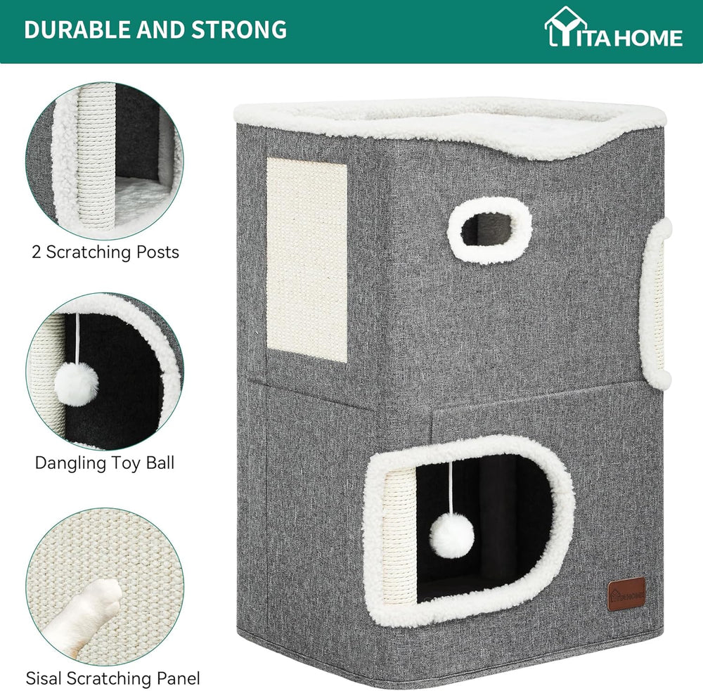 Casa para Gatos de 2 Pisos YIATHOME, con Rascador y Escondite