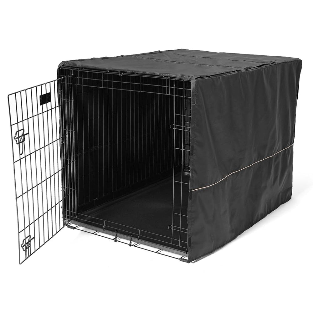 Esta es una cubierta de perrera de poliéster negra y liviana para cajas de alambre para proporcionar la privacidad, seguridad y comodidad que los perros necesitan y desean instintivamente.
