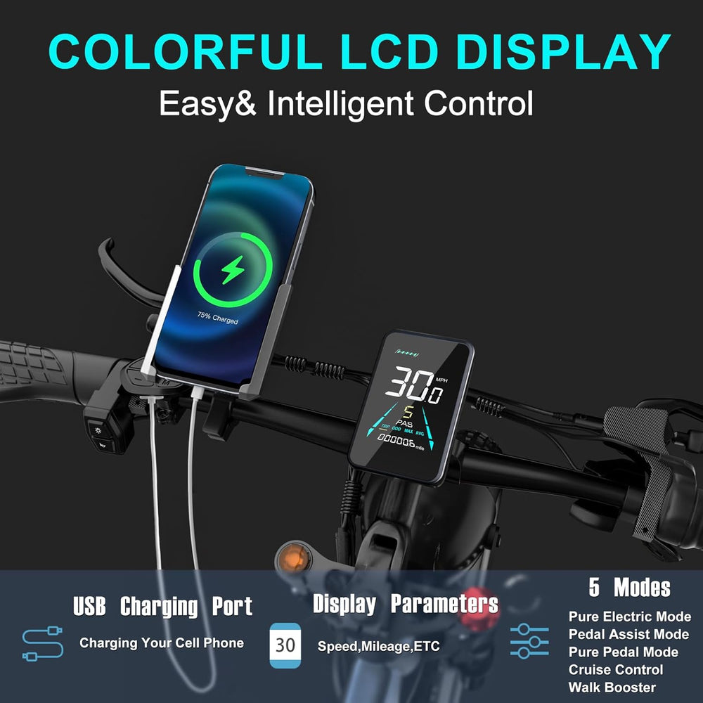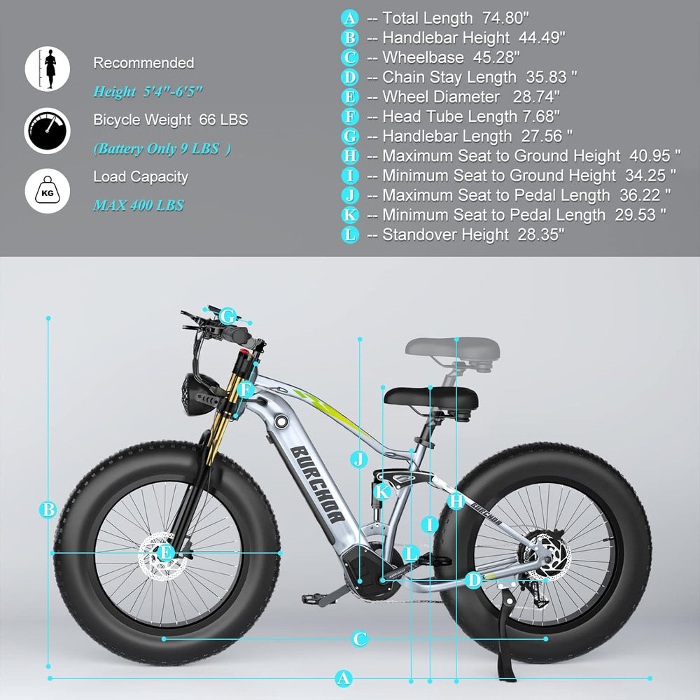 Bicicleta Eléctrica DAMSON 1000W 48V 30AH 26 Fat Tire Full Suspension