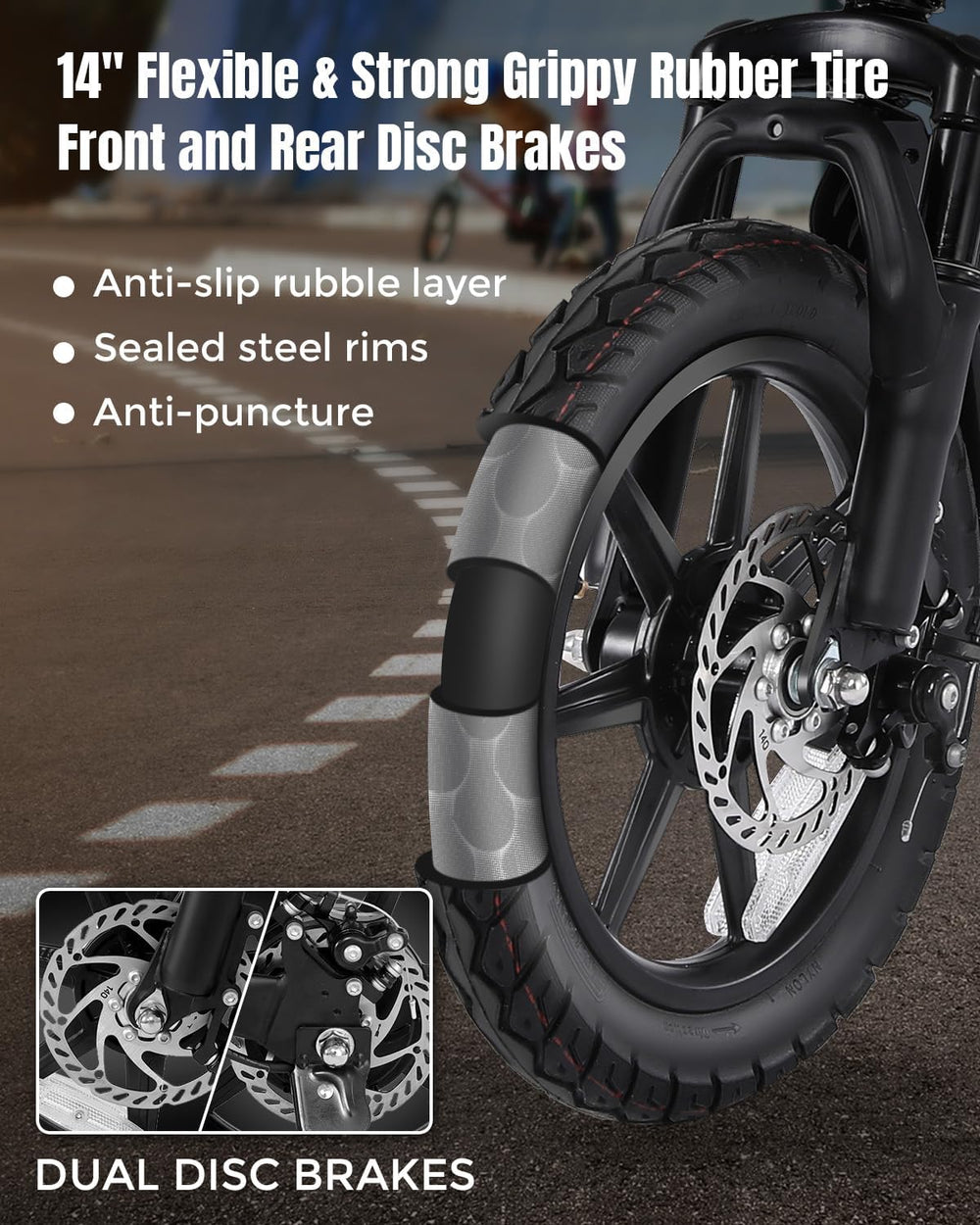 Bicicleta Eléctrica Plegable ANCHEER 14, 350W, 22MPH, UL 2849