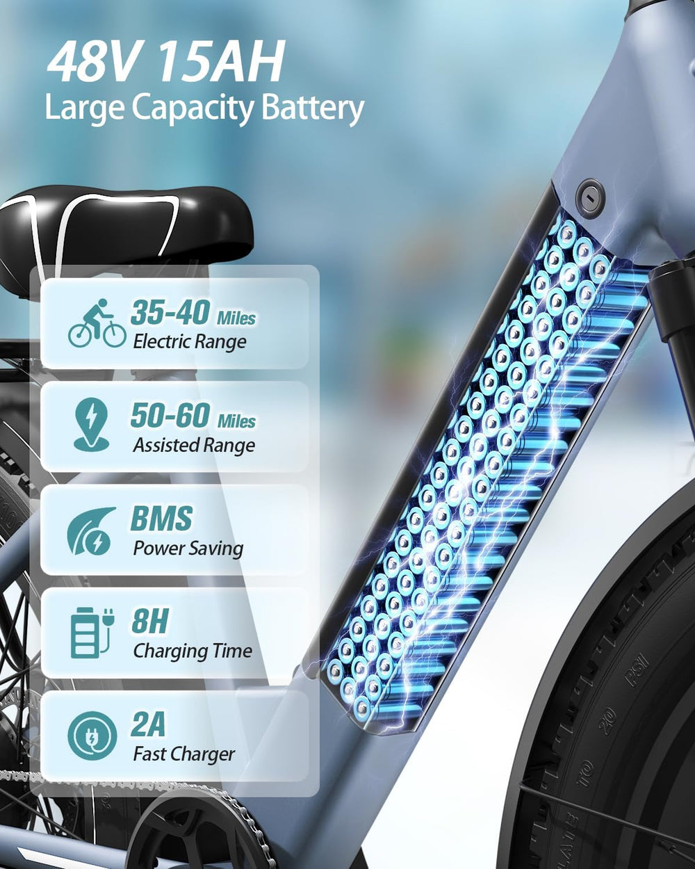 Acerca de este artí Motor Potente de 960W Pico: La bicicleta eléctrica para adultos de PUCKIPUPPY cuenta con un motor sin escobillas de 750W (960W pico). Velocidad máxima de hasta 28 par máximo de hasta 90 conquista fácilmente pendientes de 35°. Es una bicicleta eléctrica de alto rendimiento para desplazamientos diarios. Las bicicletas eléctricas PUCKIPUPPY han pasado pruebas rigurosas UL 2849 (Nombre del laboratorio de pruebas: UL LLC). Batería de 48V 15AH: Las bicicletas todo terreno están equipadas con baterías de litio removibles de gran capacidad de 48V 15AH. Cada carga puede recorrer 20MPH 40 millas en modo totalmente eléctr o 28MPH 60 millas en modo híbrido de pedal y eléctrico. ¡Definitivamente la mejor opción para desplazamientos diarios! 3 MODOS DE CONDUCCIÓN: ?Modo Totalmente Eléctr no es necesario usar los peda ahorrando energía corporal. Puedes controlar la velocidad de 0 a 20MHP a través del acelera con un alcance de 40 millas. ?Modo de Asistencia al Pedaleo (P el motor te ayudará con una cantidad moderada de potencia mientras pedaleas la bicicleta. Puedes controlar la velocidad de 0 a 28MHP por mar con un alcance de 60 millas. ?Modo de Bicicleta Nor pedalea la E-Bike normalmente o una bicicleta de montaña o de carret utilizamos una transmisión de 7 velocidades para ayudarte a conquistar diversas pendientes. Llantas de 26" Todo Terreno: Las llantas de 26 pulgadas de las bicicletas eléctricas PUCKIPUPPY tienen ventajas sobre las llantas tradicionales en cuanto a resistencia al deslizamie resistencia al desgaste y estabilidad. Por lo ta las bicicletas eléctricas PUCKIPUPPY son adecuadas para caminos o monta ni playas y carreteras urba y no son propensas a explosiones de llantas. Pantalla HD a Color: Mejora considerablemente la odidad visual y la claridad en paración con las pantallas digitales tradicionales. Nuestra pantalla se puede ver claramente tanto de día o de no permitiéndote controlar la dinámica del vehí en tiempo real; sin emba las pantallas digitales tradicionales no se ven claramente con la luz intensa y por la noche. Paquete de Accesorios de 300 USD: Al prar una bicicleta eléctr recibirás el kit de accesorios de 2024. Incluy para teléf portavasos para bicicl espejo para bicicl candado para bicicl cubierta para bicicl alarma para bicicleta. (Nota: Los paquetes de accesorios y las bicicletas se envían por separado). PUCKIPUPPY: Nuestro equipo se promete a entregarte tu bicicleta eléctrica en un plazo de 7 días hábiles después de realizar tu ped o te proporcionaremos un valor adicional de $100 en accesorios para bicicleta. ? Ver más detalles del producto La bicicleta eléctrica PUCKIPUPPY para adultos es la binación perfecta de potencia y versatilidad. Con una velocidad máxima de 30MPH y una autonomía de hasta 40 mil este ebike de 500W con batería extraíble de 15AH te llevará a donde quieras llegar. Equipada con faros delanteros y trase absorción de impactos y neumáticos gruesos de 26" todo terr esta bicicleta es ideal para recorridos en caminos de tie monta nieve y calles de la ciudad. ¡Descubre una nueva forma de moverte con PUCKIPUPPY!