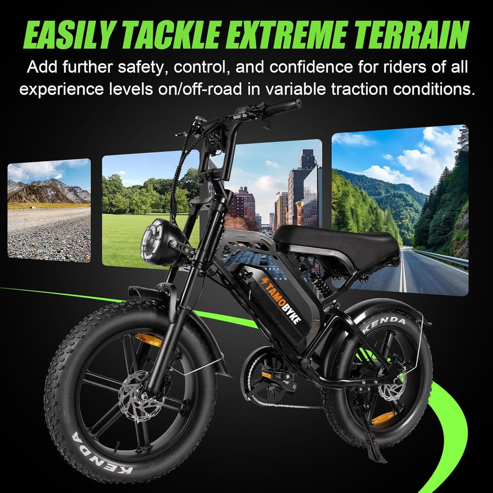 Bicicleta eléctrica V20 1000W 28MPH 48V 15AH, suspensión completa