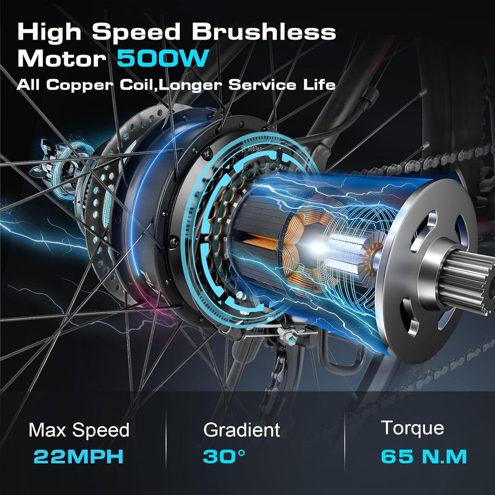 Bicicleta Eléctrica Vivi, 500W, 50 millas, 21 velocidades, MTB