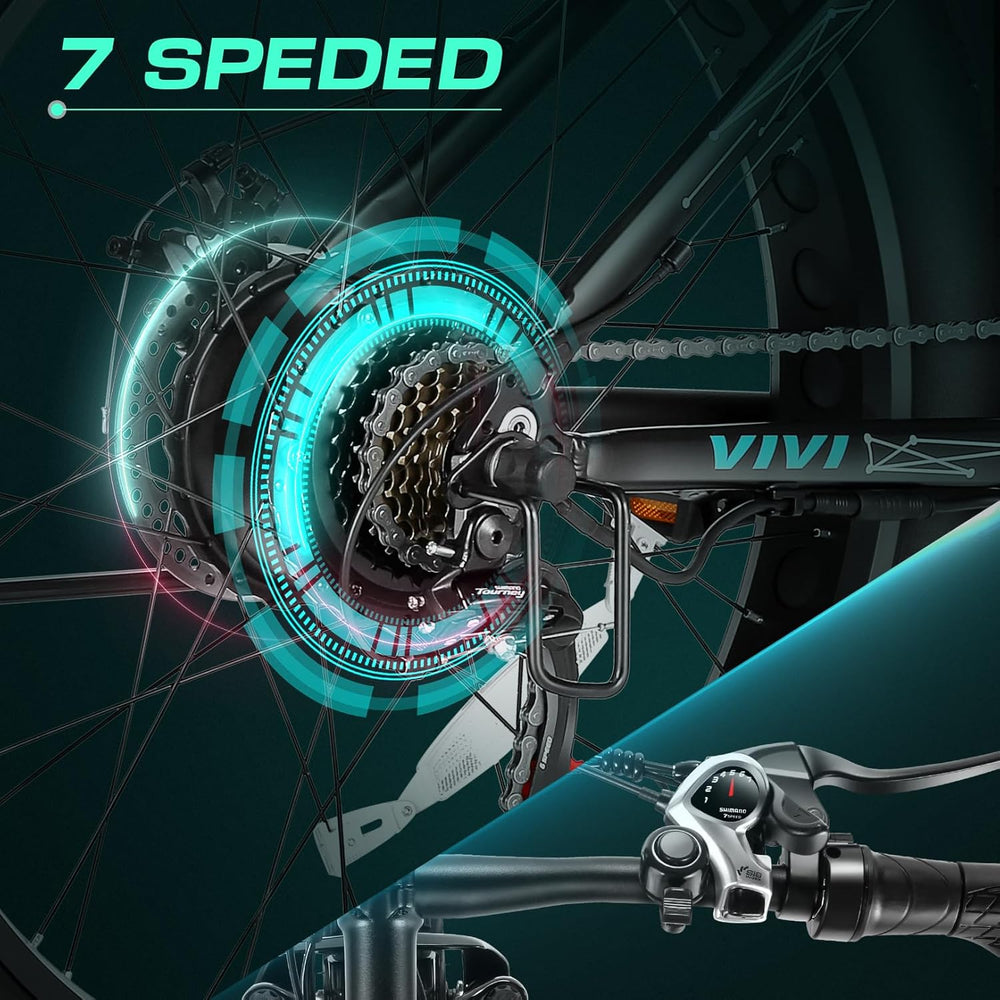 Bicicleta Eléctrica Vivi F26FUL 1000W, 48V, 60 Millas, 7 Velocidades
