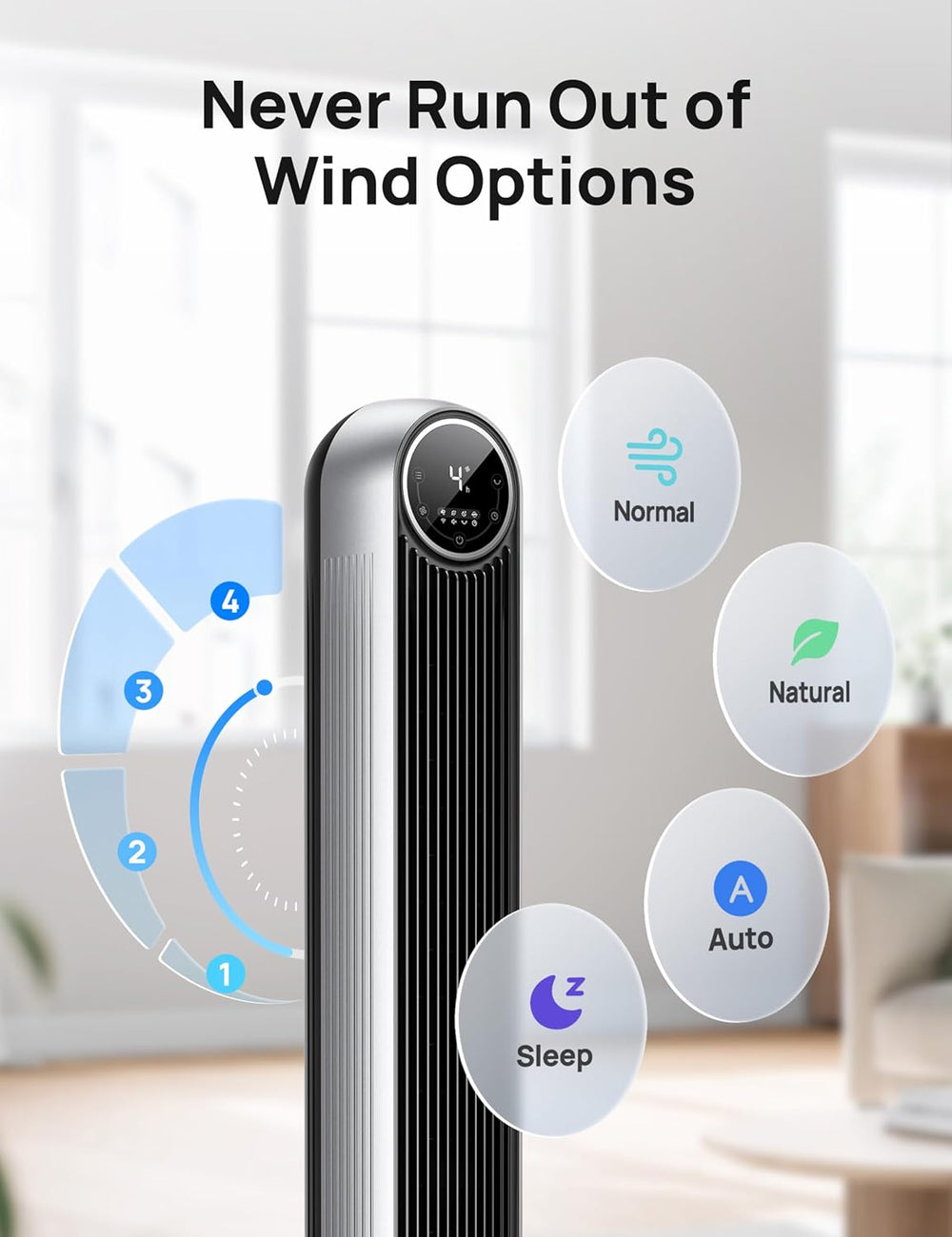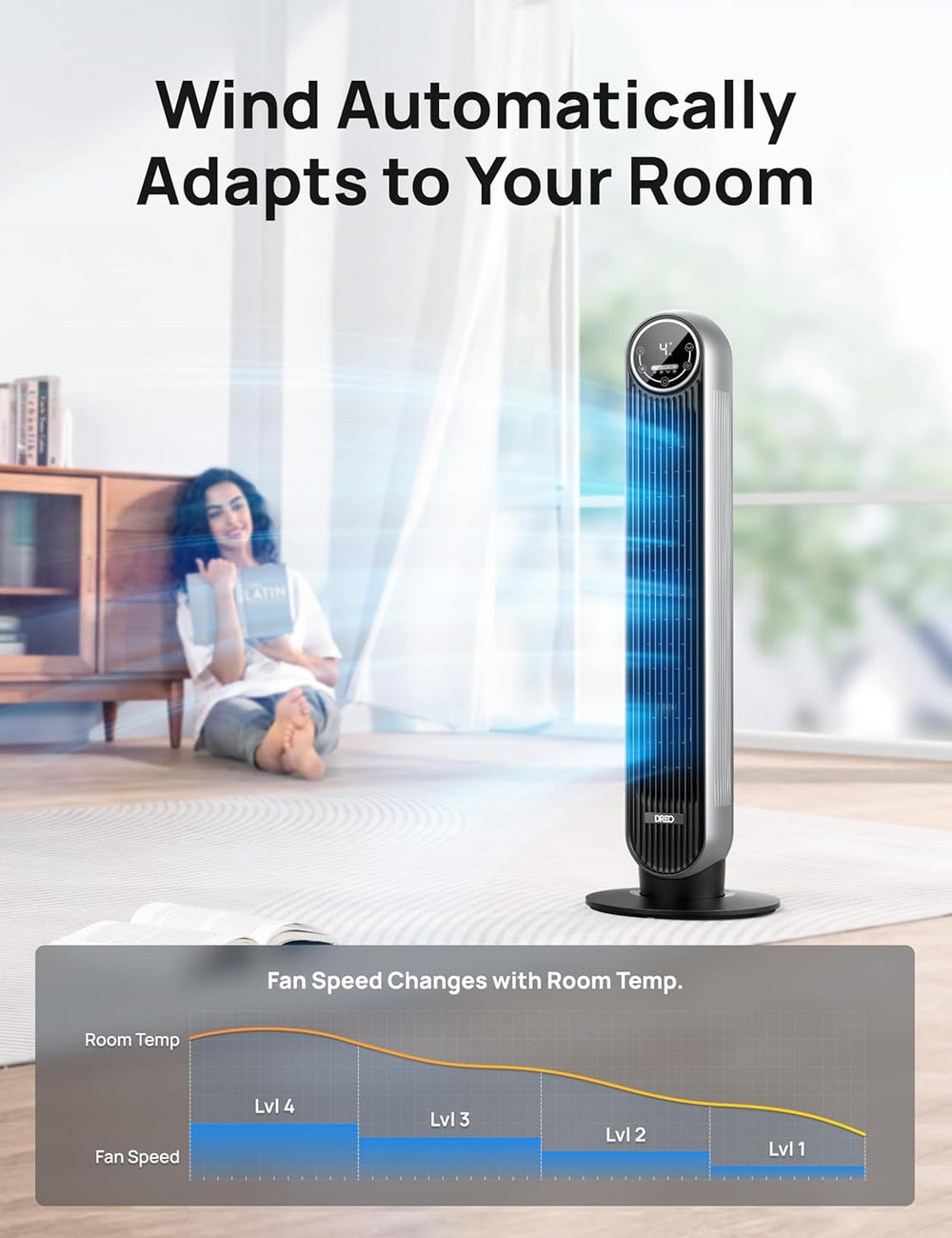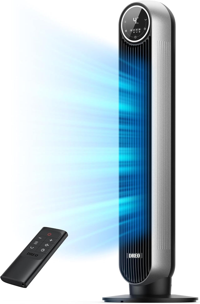 Acerca de este artí Potente y Portátil: El sistema de flujo de aire todo en uno de Dreo se ina con un motor eléctrico de alta poten ofreciendo vientos refrescantes de alta velocidad. Este ventilador de torre acto de 36 pulgadas anima cada pulgada de aire en tu espacio vital rápidamente a hasta 25 pies por segundo. Corte el Ruido: Disfruta de serenidad y didad todo e gracias a su diseño de impulsor algorítmico y el mágico efecto Conada. Junto con el apagado automático de la panta el silencio automático en el modo de su el temporizador de 8 horas y un flujo de aire relaja siempre puedes tener un sueño reparador cuando lo necesites. Fácil de Limpiar y Seguro de Usar: La rejilla trasera desmontable y la rueda del impulsor facilitan la limpieza. Diseñado con rejillas a prueba de pelliz un enchufe fusible y protección de circuito integr este ventilador de pie con certificación ETL garantiza que la seguridad siempre sea una prioridad. Lejano y Amplio: La oscilación de 90° y la trayectoria de flujo de aire calibrada permiten que este ventilador oscilante cubra más áreas en la habitación. Combínalo con tus aires acondicionados para obtener didad rentable durante los días calurosos. Comodidad Personalizable: Con 4 modos (Normal Natural Sueño Auto) y 4 velocidades de suave a fuerte una torme puedes personalizar fácilmente tu didad con solo tocar un bo en el panel o con el control remoto. Se Adapta en Cualquier Lugar: Con un diseño acto y una asa ocu puedes guardar fácilmente el control remoto en el artimento incorporado y llevar este ventilador delgado a tu dormito sala de estar u otros lugares. Una elección perfecta para el hogar y la oficina. ? Ver más detalles del producto Información del producto Medidas - Peso del artí : 9 libras - Longitud de la hoja: 36 pulgadas - Dimensiones del artí (Largo x Ancho x Alto): 11.81"D x 11.81"W x 36.22"H estilo - Nombre de la colección: Inicio - Tema: Ventiladores eléctri Electrodomésticos para el hogar. - Diseño del ventilador eléctrico: Ventilador de piso - Nombre del estilo: Estándar - Color: Plata Materiales y cuidado - Material de la hoja: Plástico - Tipo de material: Plástico - L del fabricante se puede solicitar a . para hacer una solicitud a . Características y especificaciones - Voltaje: 120 - Tipo de interruptor: Botón o táctil - Uso en interiores o exteriores: Interior - Método de control: Rem Táctil - ¿Es inalámbrico el producto? No - ¿Es eléctrico? Si - Número de niveles de potencia: 4 - Tipo de conector de corriente principal: Conector de corriente alterna estándar (EE. UU.) - Número de velocidades: 4 - Nivel de ruido: 34 dB - Potencia: 42 vatios - Fuente de alimentación: Eléctrica con cable - Tipo de habitación: Coc Dormito Sala de es hogar - Características adicionales: Inteligencia ambien nivel de ruido silencioso: 34-48 Máx. 24ft s de alta veloci Control táctil y rem Temporizador de 8 horas (Encendido Apagado) - Usos r ndados para el producto: Circulación de a Dormito Hogar - Tipo de montaje: Independiente - Tipo de controlador: Control remoto