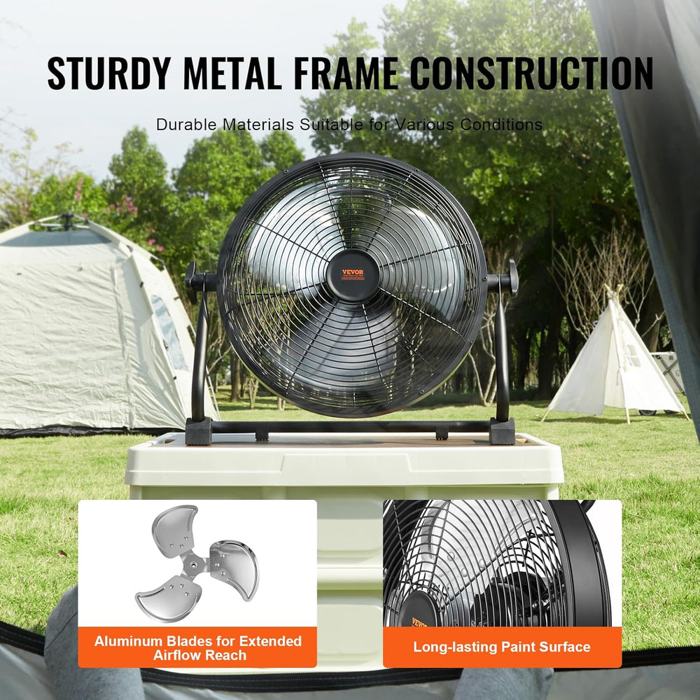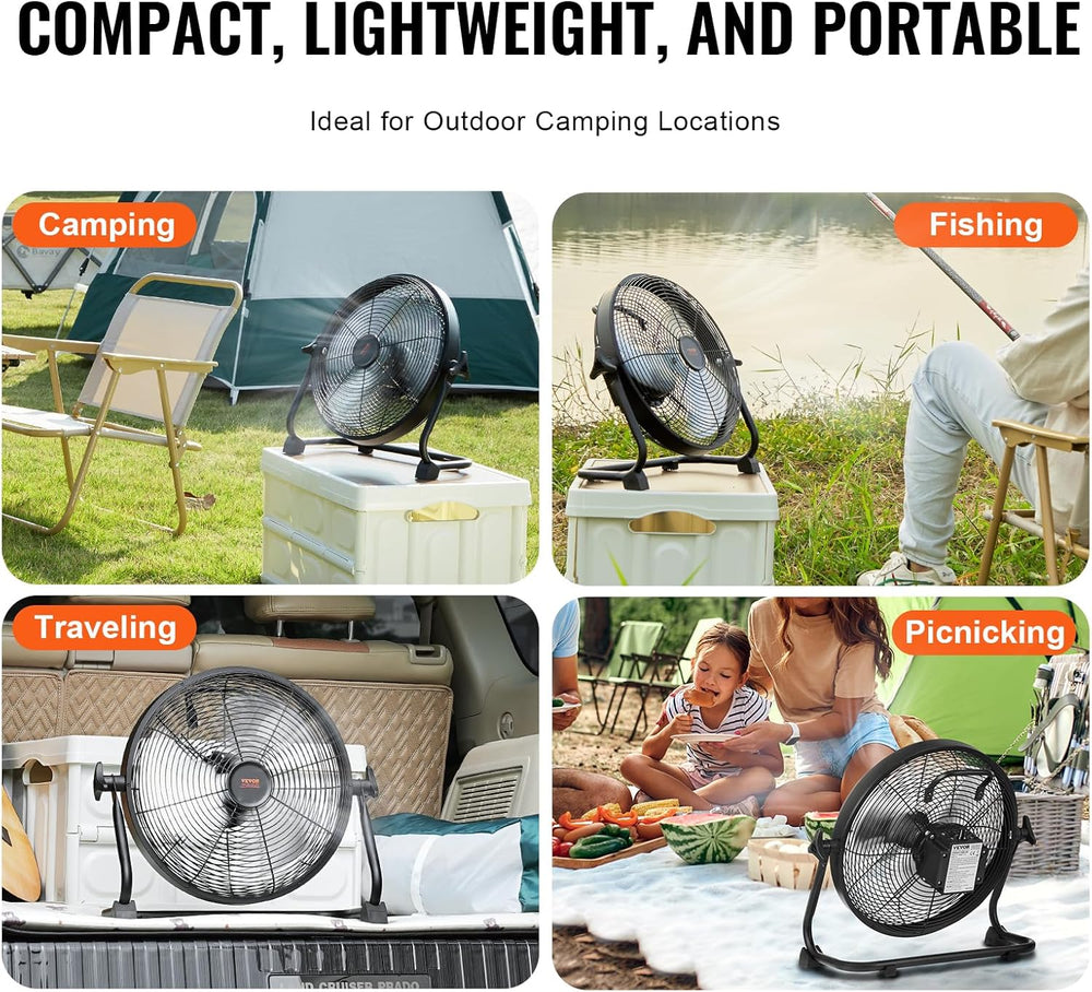 VEVOR Ventilador de Piso Recargable 12'', Alta Velocidad, Modelo Industrial