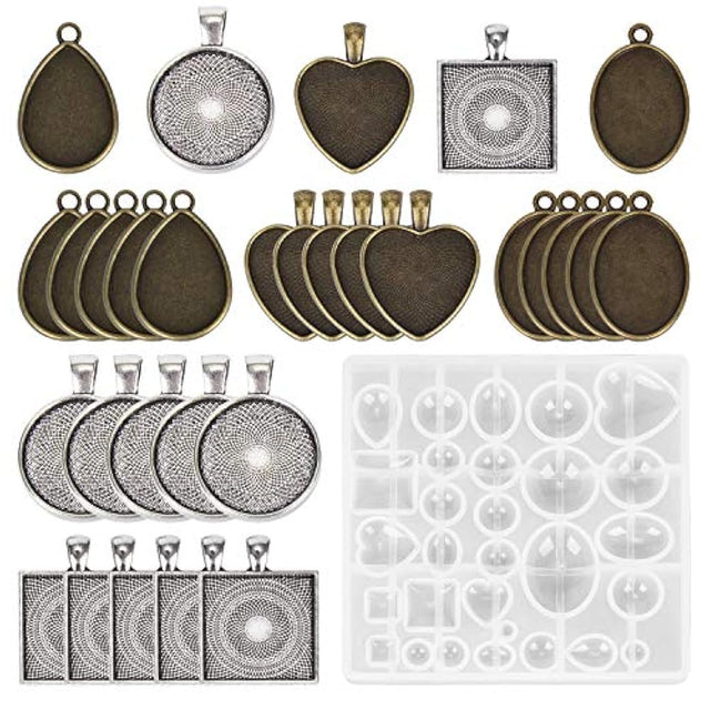 Moldes de fundición de joyas de resina de silicona de 25 mm y 1 pieza, que contiene 5 tamaños correctos y muchas otras formas diferentes, o diferentes cuadrados, rectangulares, redondos para satisfacer sus diferentes necesidades en la fabricación de joyas.