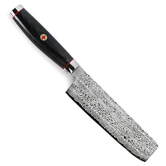 *** Descripción *** .Construido de acero inoxidable en polvo de microcarburo SG2 japonés, el kanji japonés está grabado a mano en la hoja; 63 dureza RockwellConstrucción de 101 capas de acero inoxidable Damasco con núcleo de acero SG2; borde de doble bisel para uso tanto a mano derecha o izquierda.Mango de micarta de lona negra con refuerzo de acero inoxidable 18/10 y tapa final grabada, separadores rojos y escudo de Samurai; la construcción de mango pleto de tanque cerrado garantiza resistencia, durabilidad y equilibrio.Limpiar con agua tibia y detergente suave; aproximadamente 12° ángulo de la hojaHecho a mano en Seki City (Japón) con .
