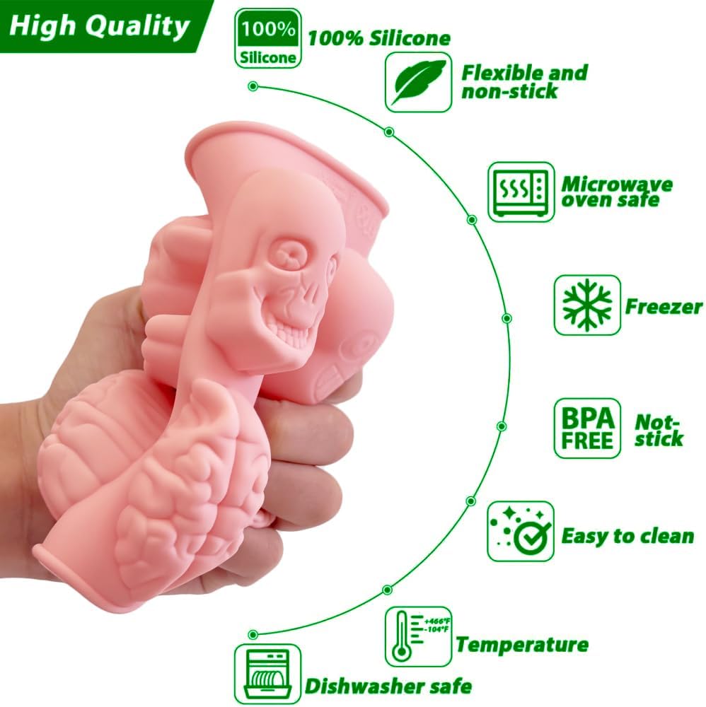 Molde de Silicona Halloween, 2 Cavidades, Calaveras y Cerebros