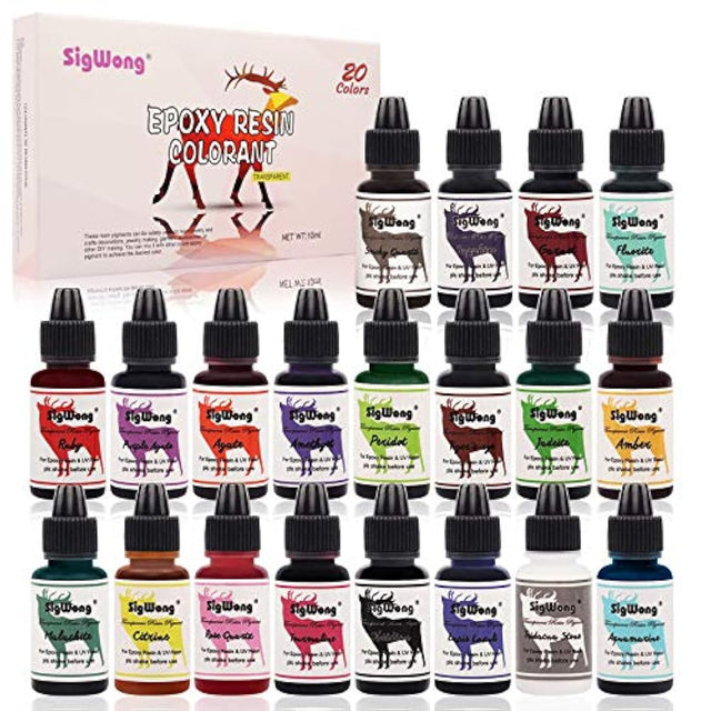 Pigmento de resina epoxi UV – 20 colores líquido transparente resina epoxi UV colorante, tinte de resina epoxi altamente concentrado para bricolaje joyería, resina AB para pintura, manualidades – 0.3 fl oz cada uno