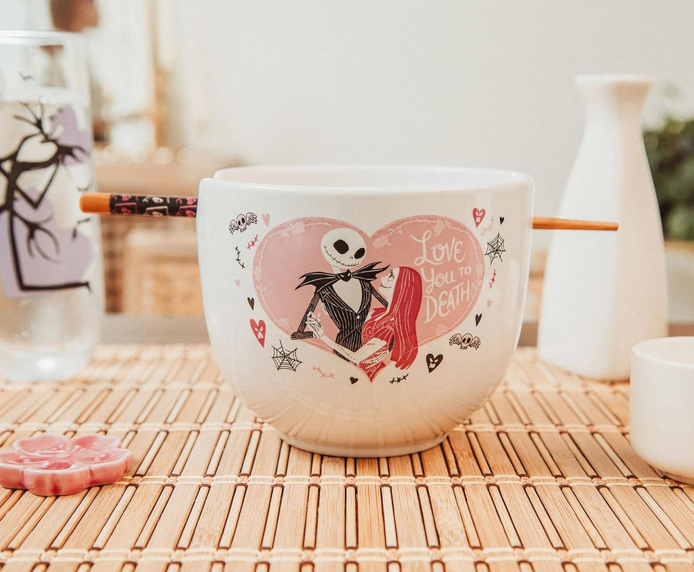 Set de Cerámica Jack y Sally de Disney, Tazón y Palillos de Madera