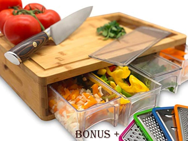 Tabla de cortar de bambú con bandejas y tapas. está agotado y se enviará tan pronto como vuelva a estar disponible.