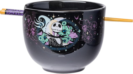 Set de Cerámica Jack y Sally de Disney, Tazón y Palillos de Madera