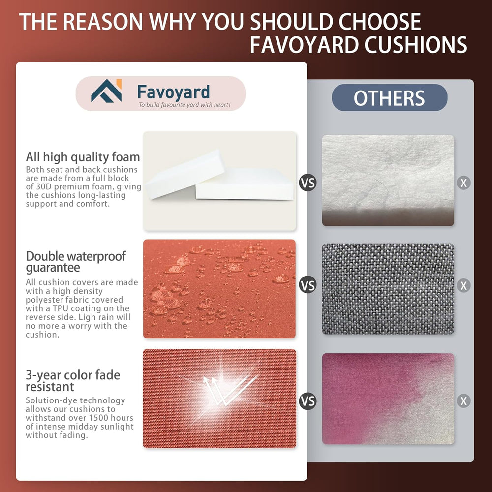 Favoyard Juego de cojines de asiento profundo de 22 x 22 pulgadas, cojines impermeables para sillas de exterior para muebles de patio con funda resistente a la decoloración y extraíble con asa y está agotado y se enviará tan pronto como vuelva a estar disponible.