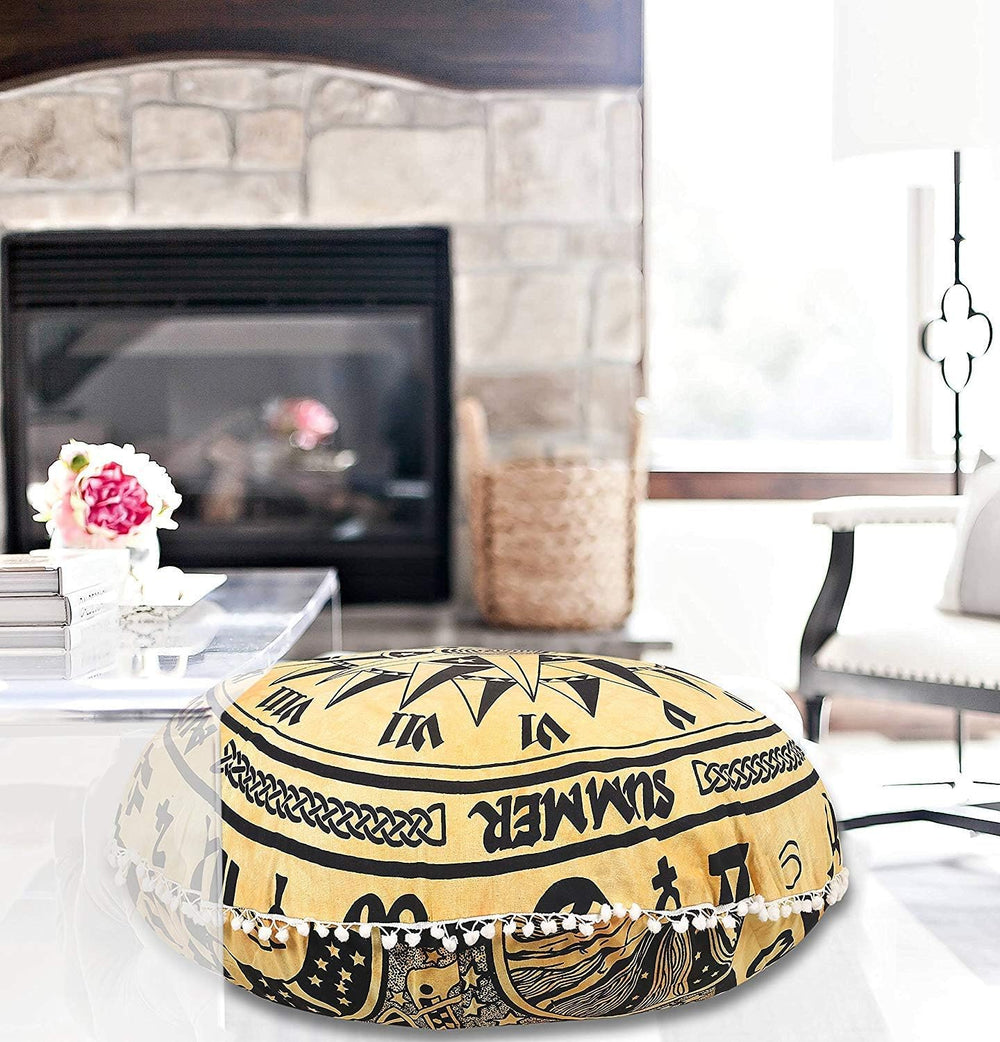 Funda bohemia para cojín, de 32 pulgadas, con diseño de mandala, para meditación, decorativa, otomana, grande, para exteriores, decoración del hogar, decoración de arte en el hogar, redonda, con pompones de algodón, cómoda