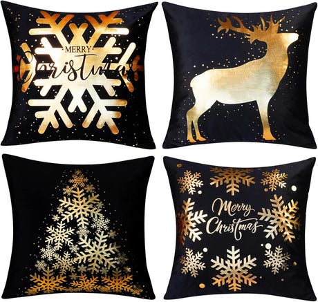 Funda de Cojín ONWAY 18x18 Set de 4 Copos de Nieve y Renos